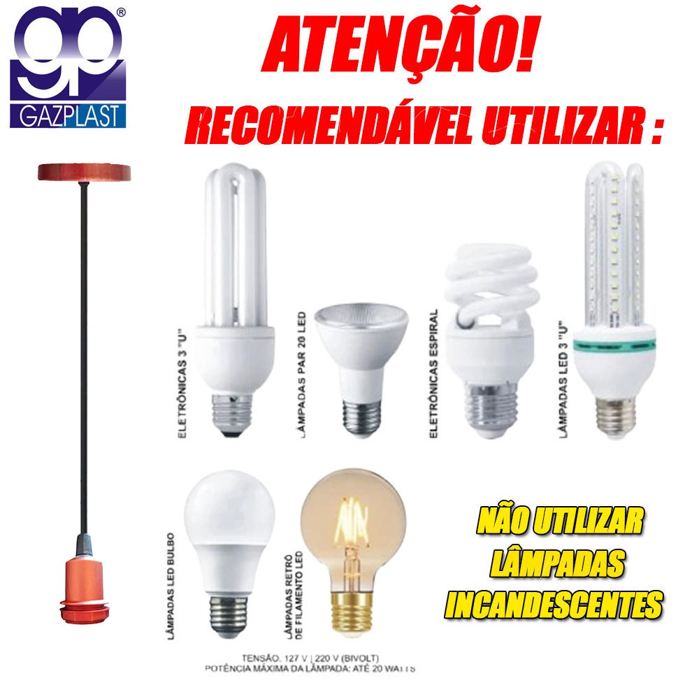 LUMINARIA LUSTRE PENDENTE SOQUETE COM ROSCA PARA CUPULA ABAJOUR QUARTO SALA COZINHA AREA INTERNA