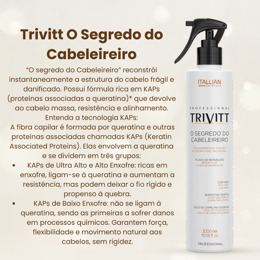 O Segredo Do Cabeleireiro Trivitt 300ml - Spray Reconstrutor Itallian Hairtech
