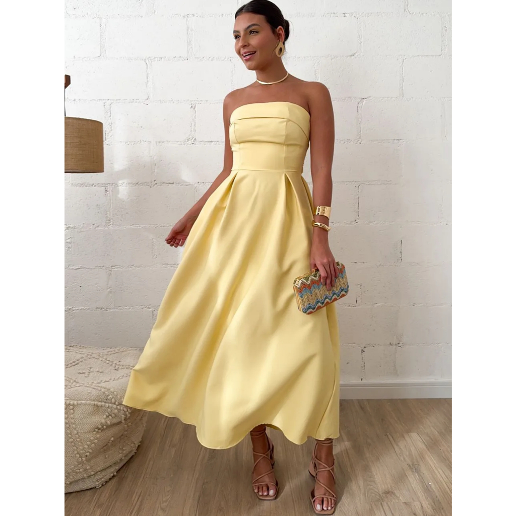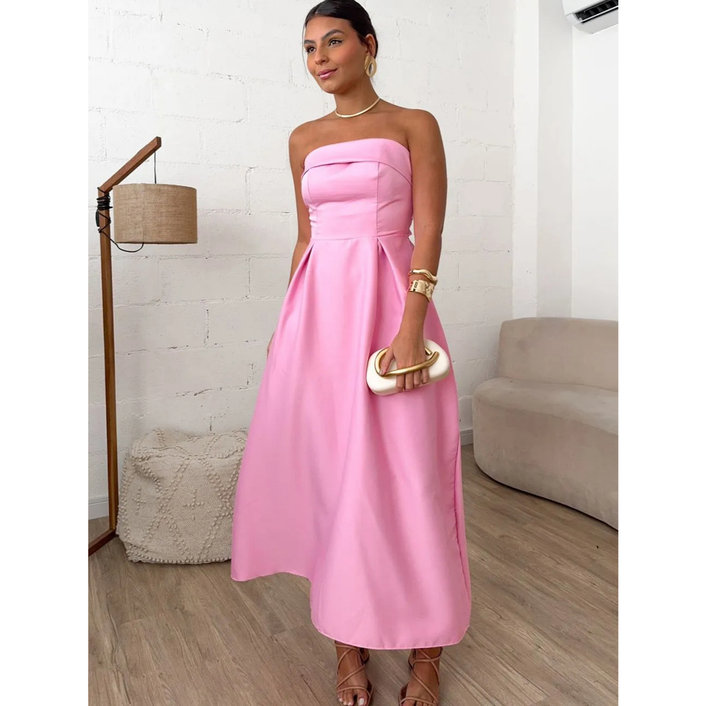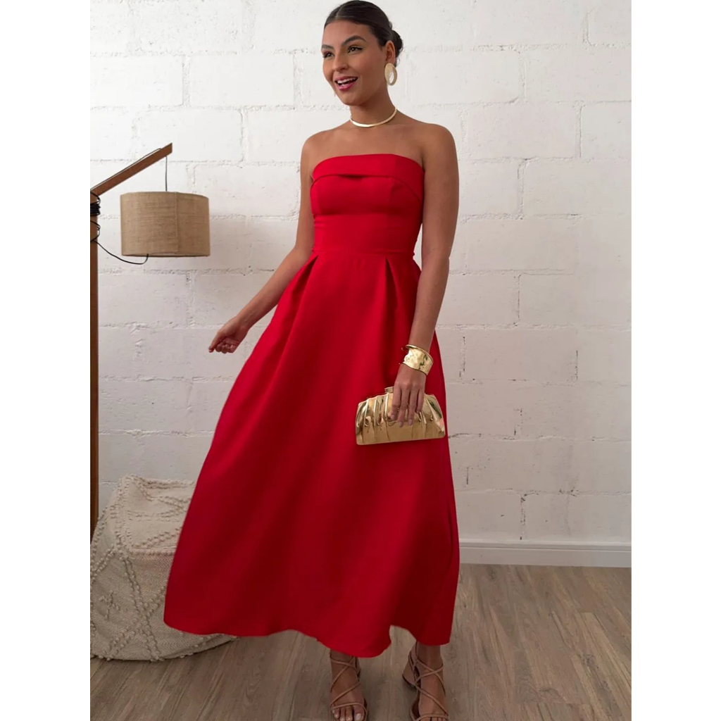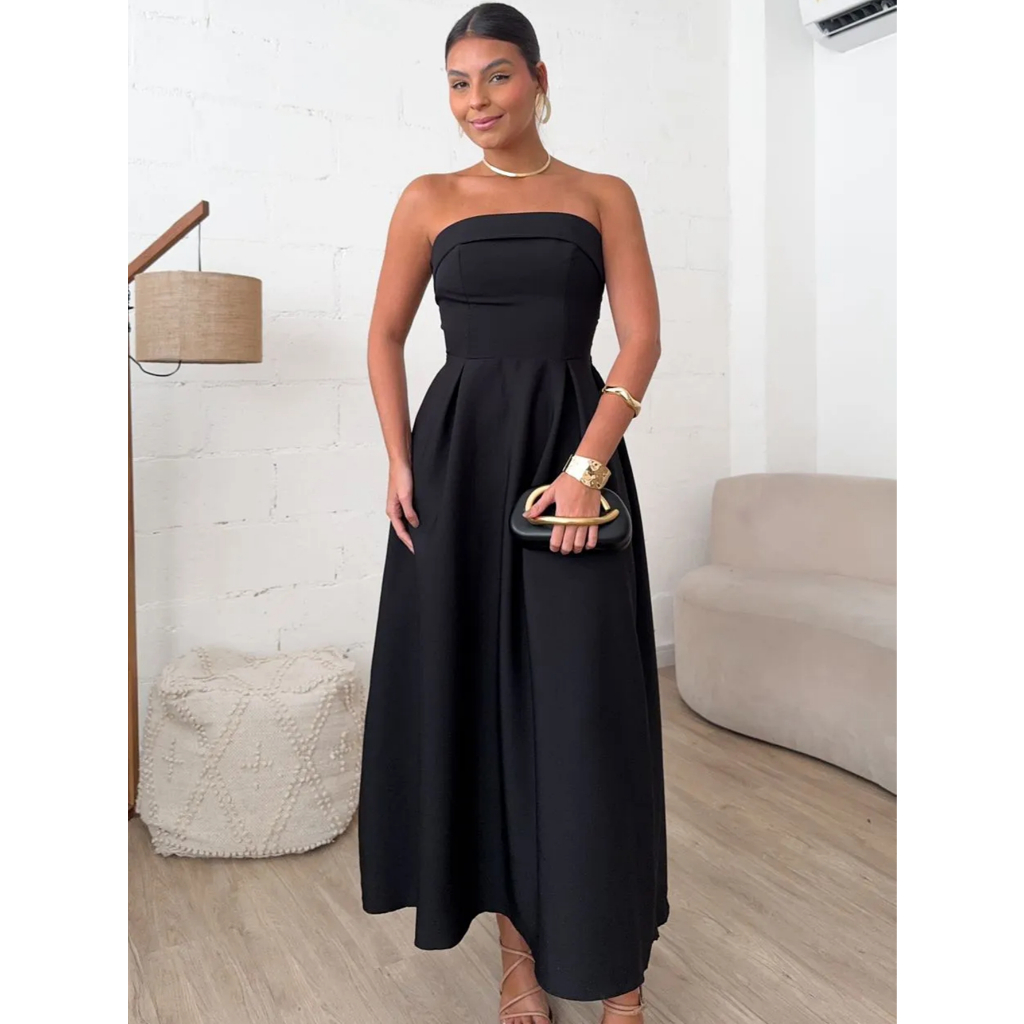 Vestido Feminino Tomara que Caia Alfaiataria com Bojo Drapeado