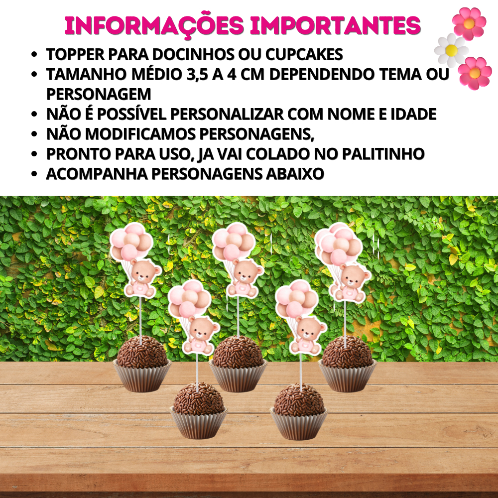 Topper de Docinho Ursinho Rosa Chá de Fralda- Topper de Cupcake Ursinho Rosa Chá de Fralda