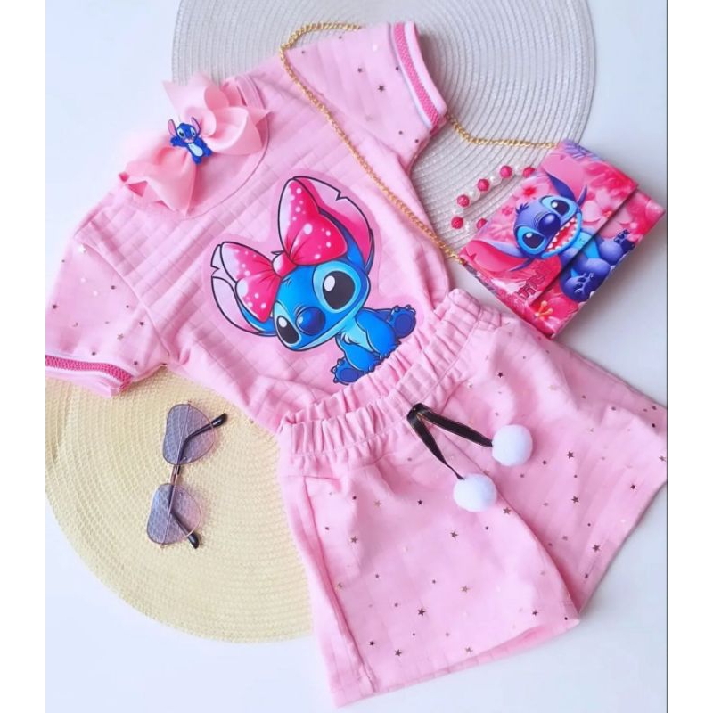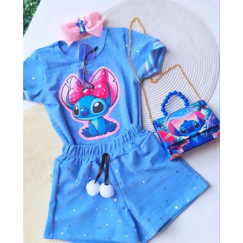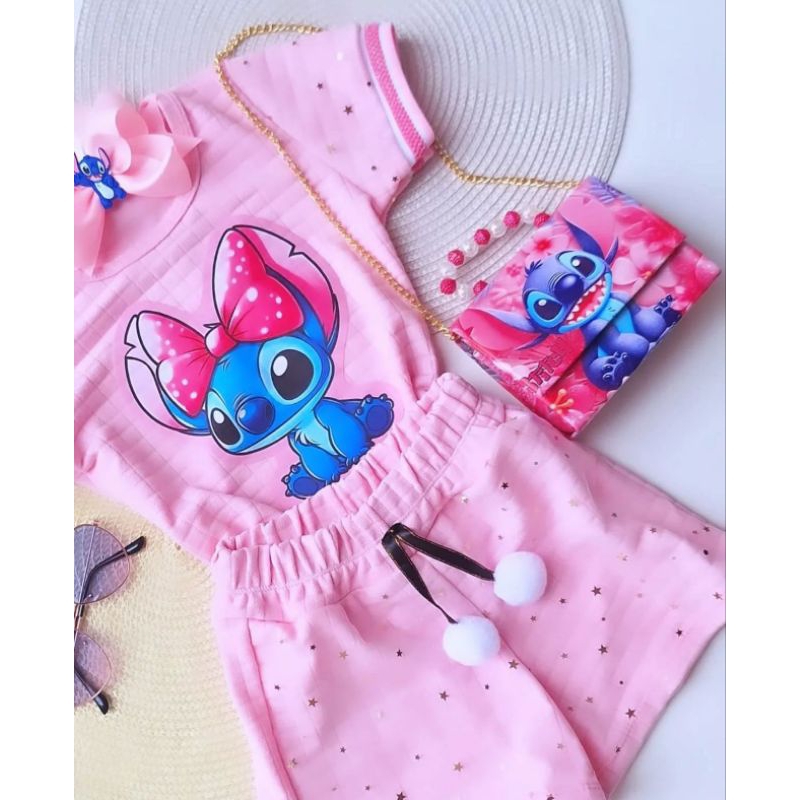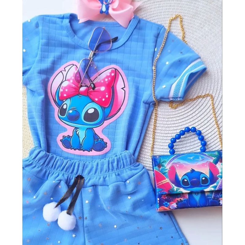Conjunto stitch shorts e blusa TAM 2 ao 14