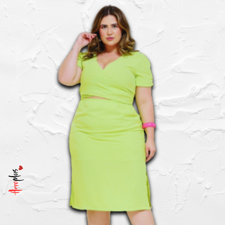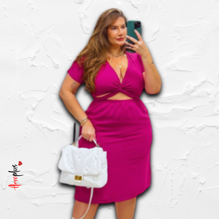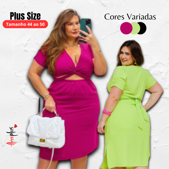 Vestido Midi Air Flow Com Fenda Lateral Manga Franzido Plus Size P M G GG