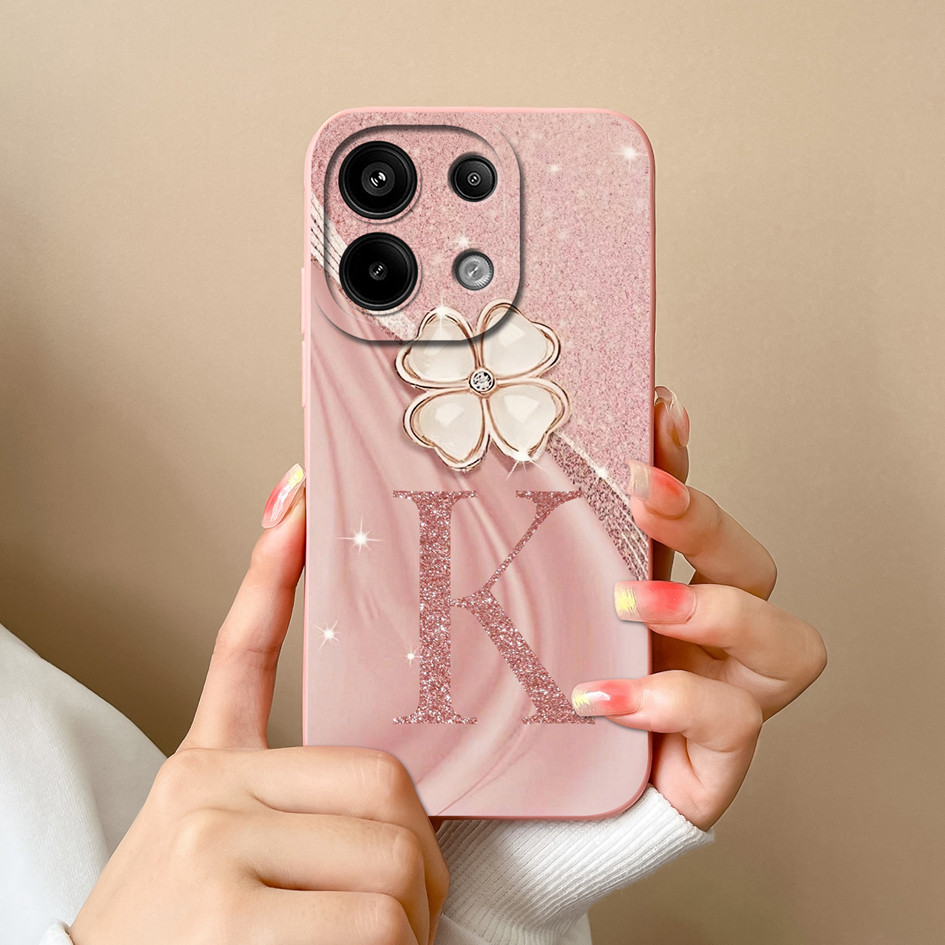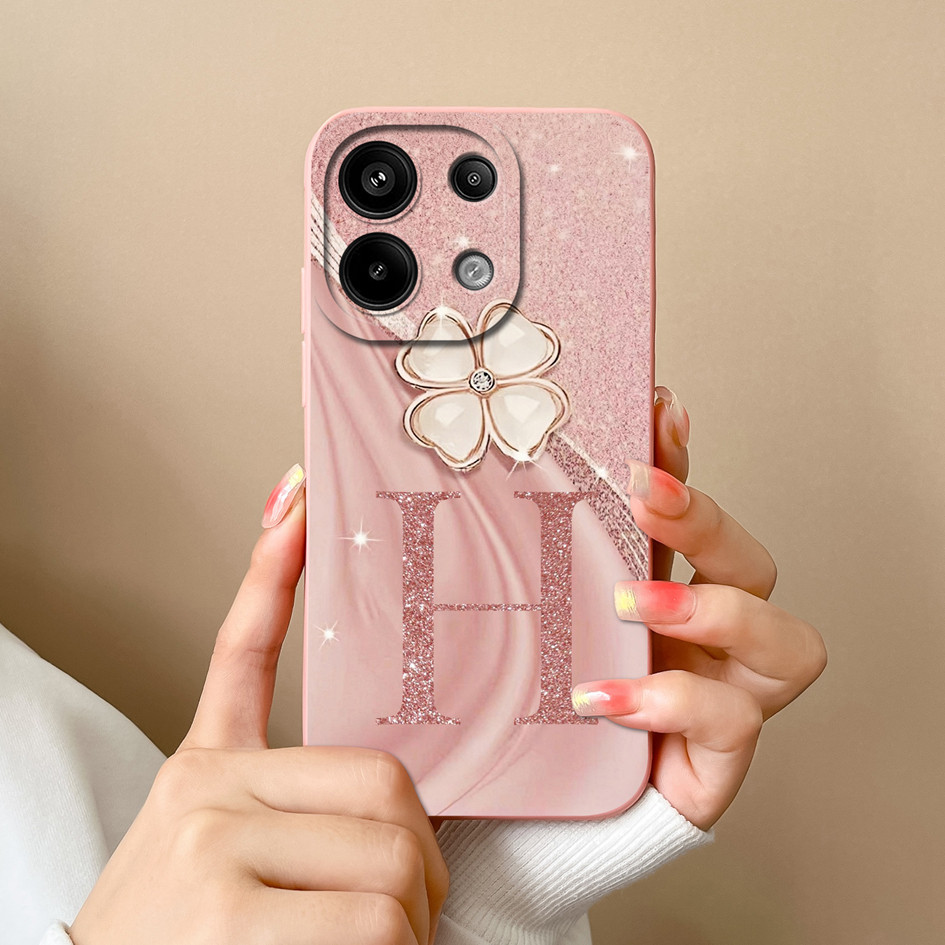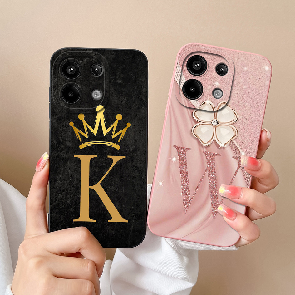 Invólucro Para Redmi Note 13 4G 5G Capa À Prova De Choque De Alta Qualidade Com Letras De Flores Foscas Protetora Preta