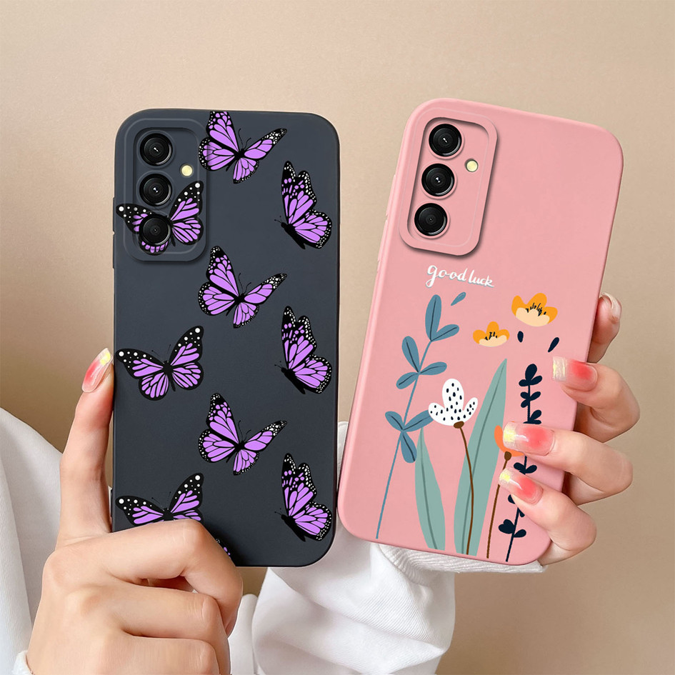Caixa Para Samsung Galaxy M35 5G Proteção Da Câmera Popular Flor Capa De Silicone M 35 Bumper