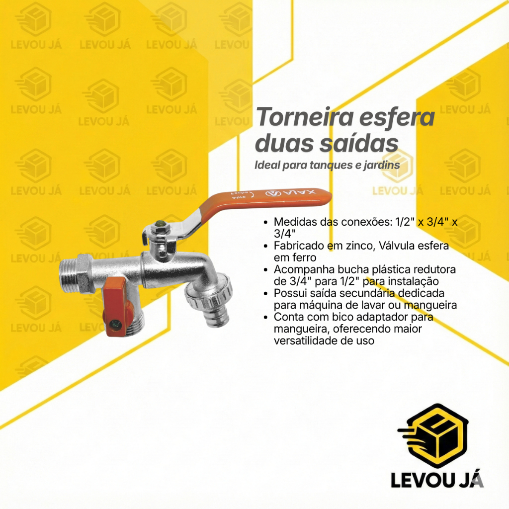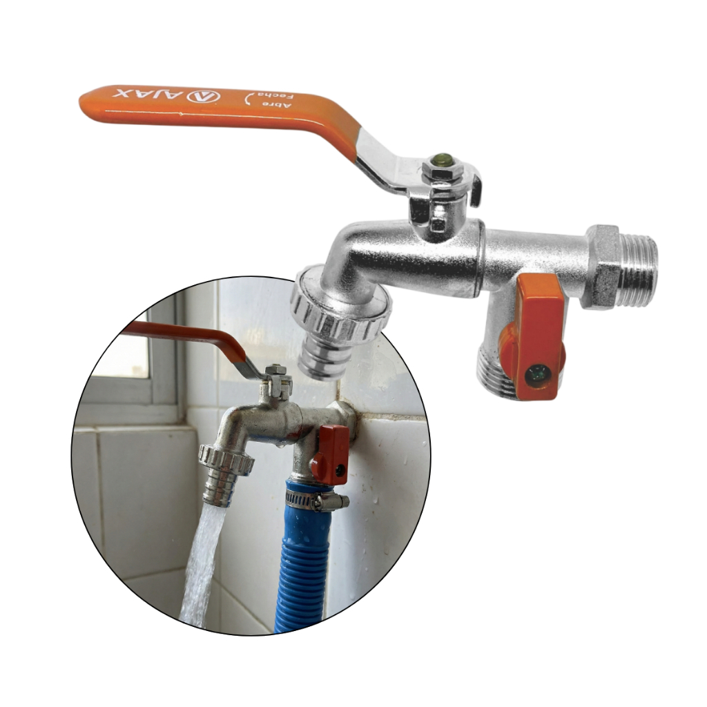 TORNEIRA TANQUE MÁQUINA DE LAVAR TANQUINHO JARDIM DUAS SAÍDAS 1/2" 3/4" METAL