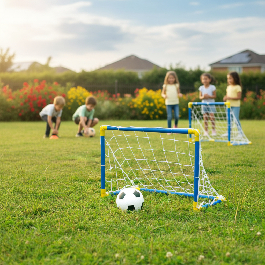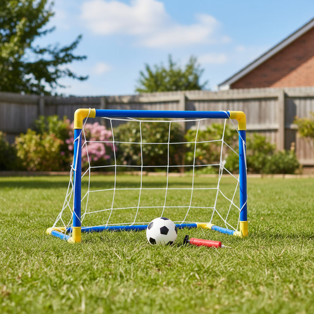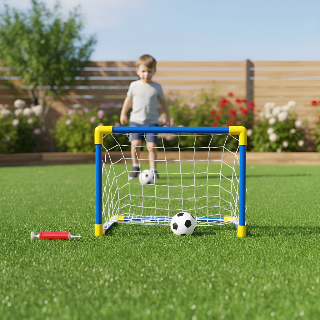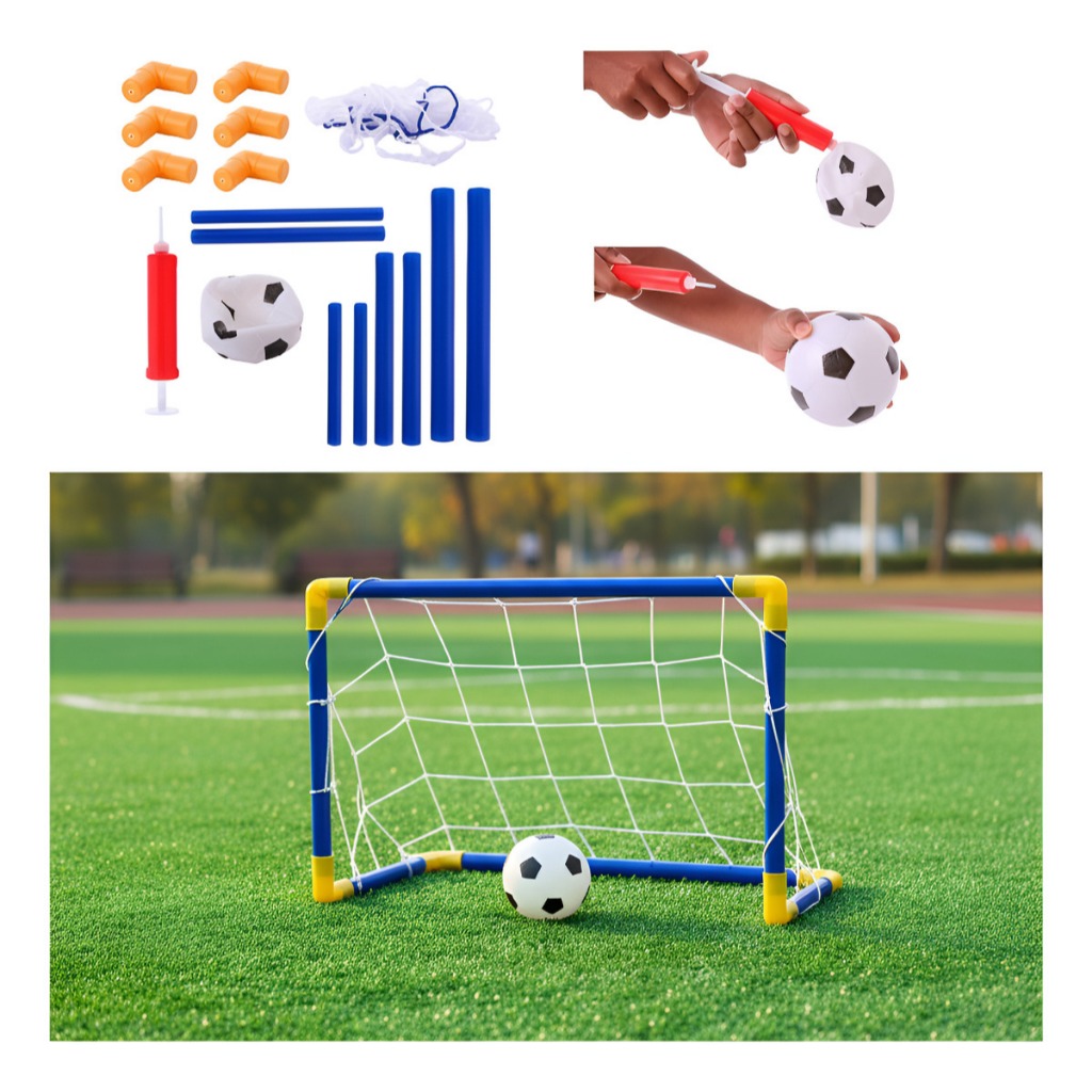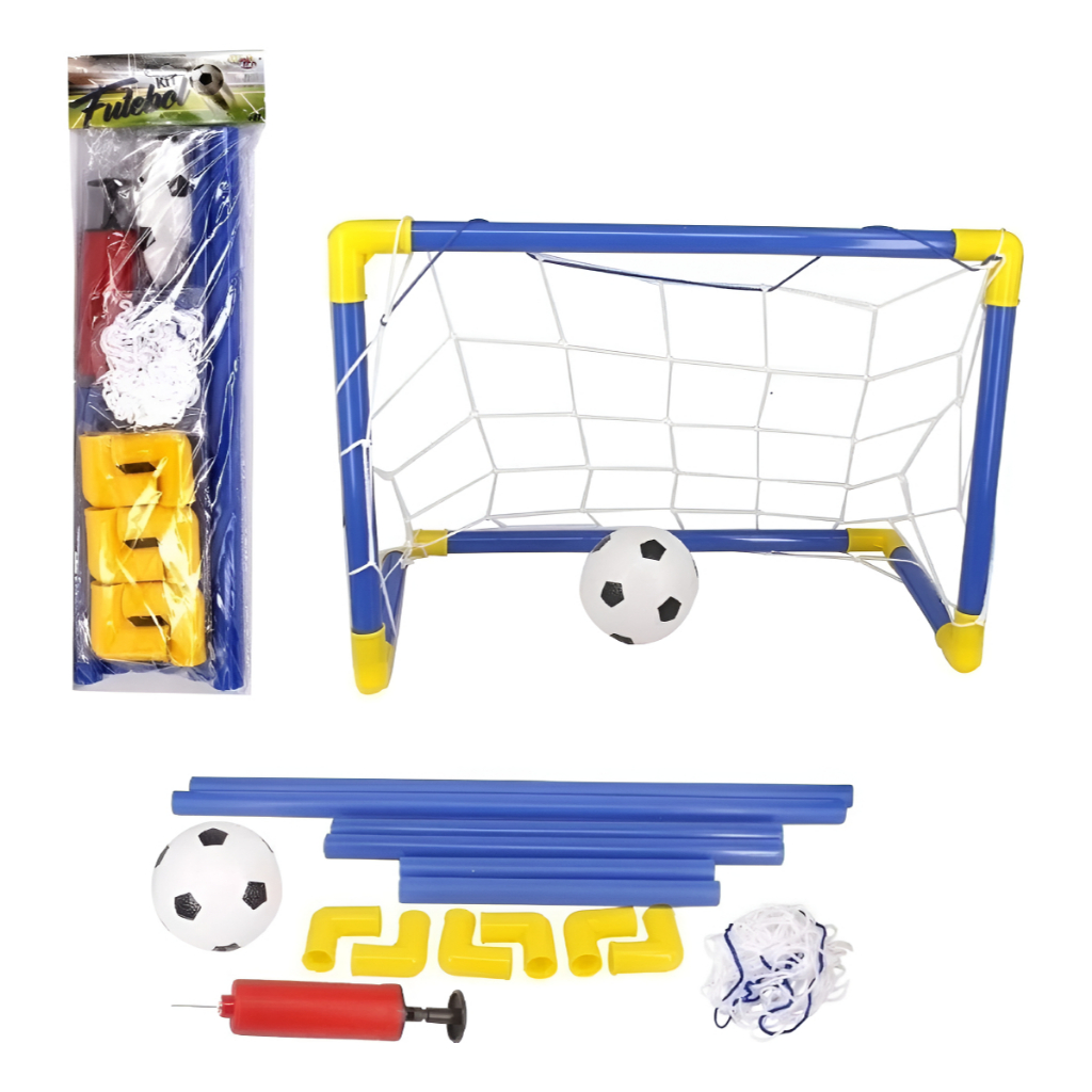 KIT 1 2 GOLZINHO MINI TRAVE INFANTIL COM ACESSÓRIOS BOLA E BOMBA DE AR GOLEIRO ATACANTE HOMEPLAY