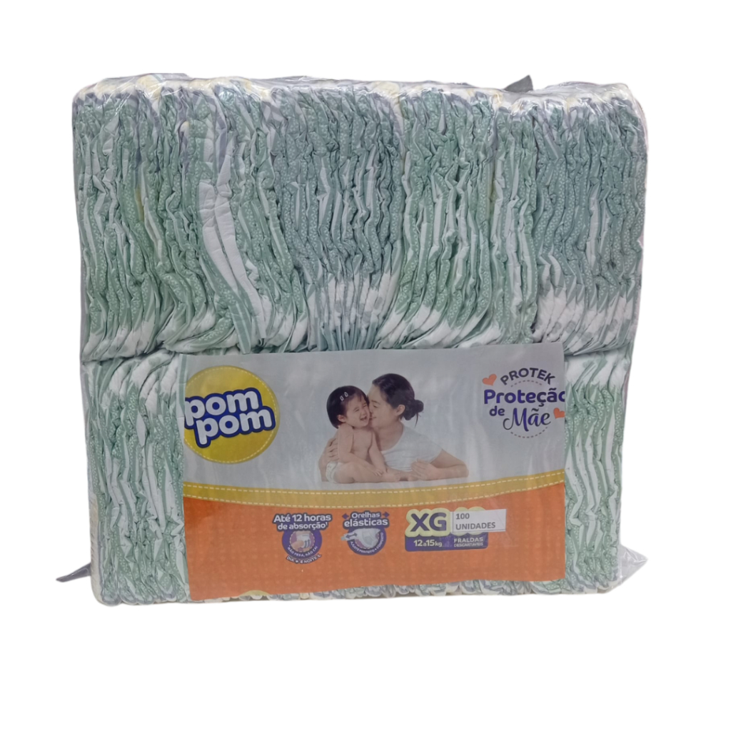 Pacotão com 100 Fraldas Pom Pom Protek Proteção de mãe M(4- 9kg) G(8-13kg) XG(12-15kg) XXG(14-18kg)