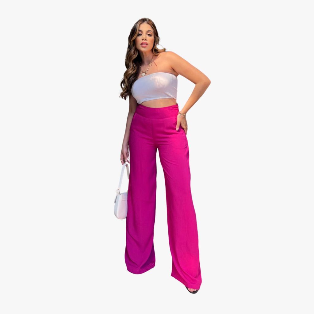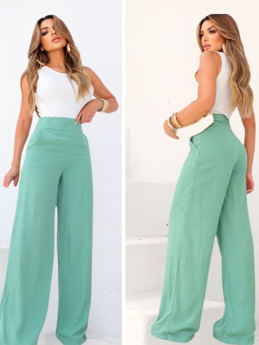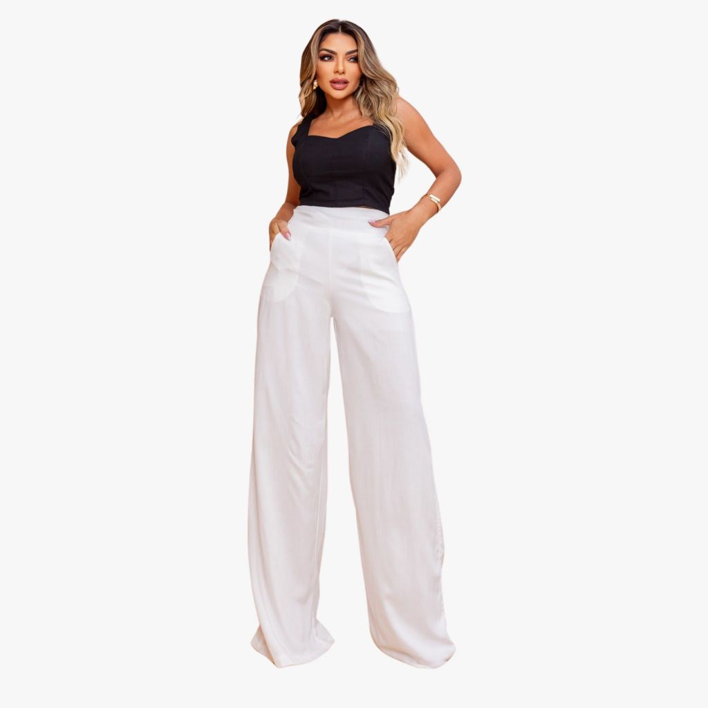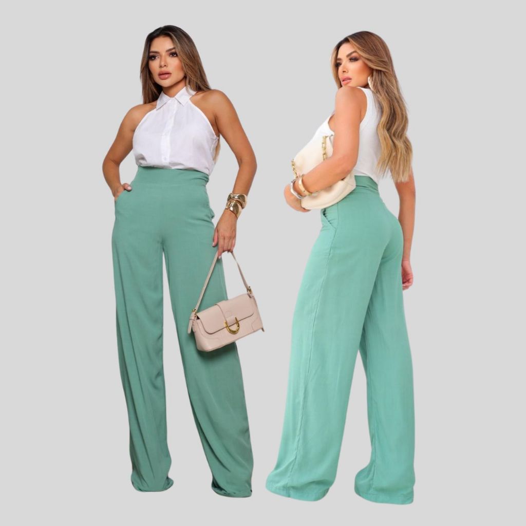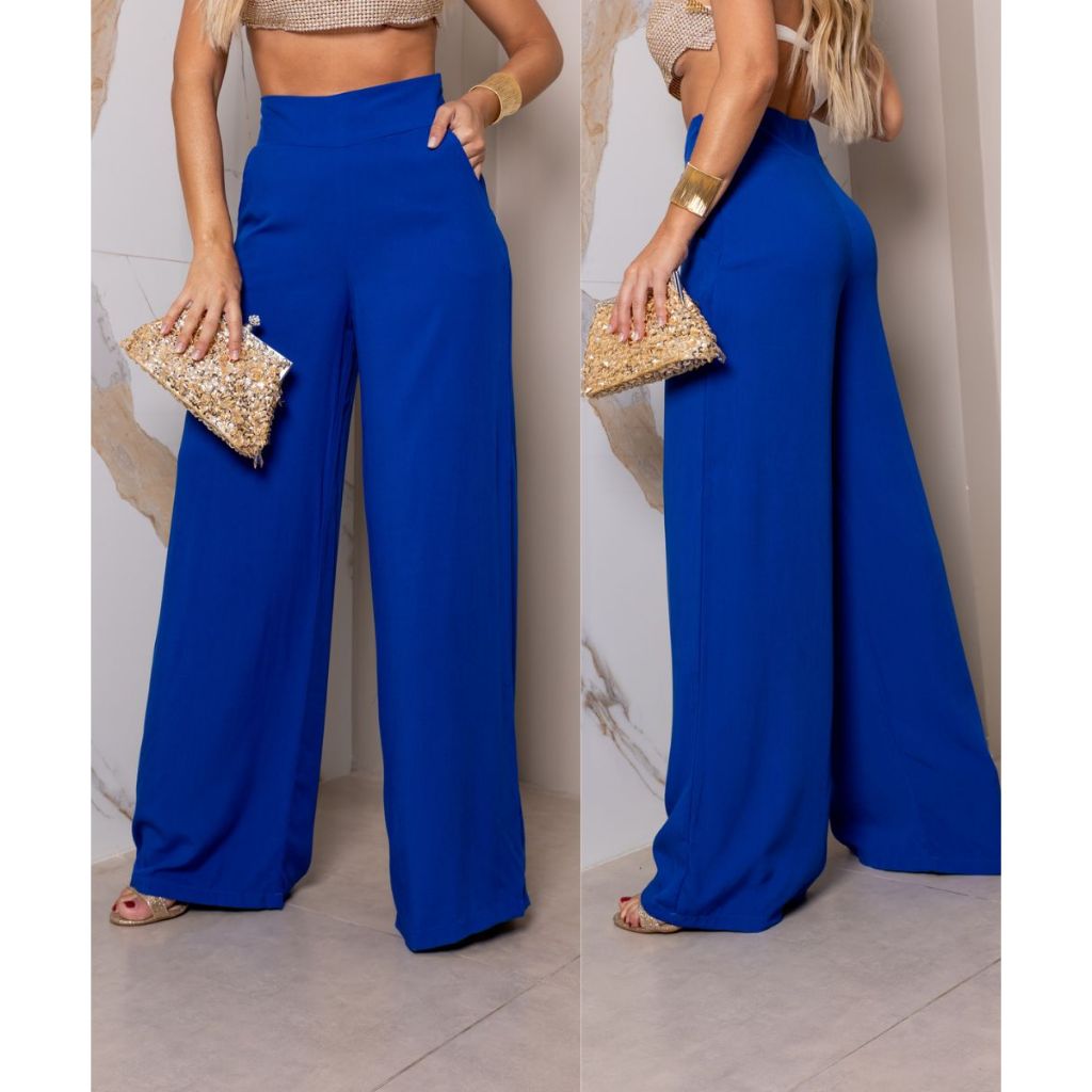 Calça Pantalona Feminina Social Cintura Alta Viscolinho Forrada Elegante Trabalho Casual P M G