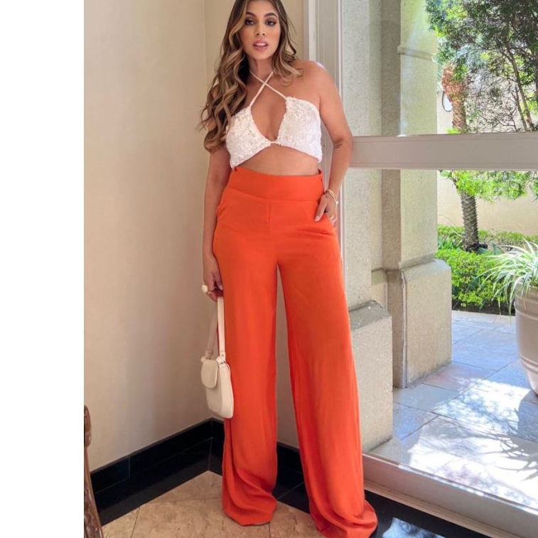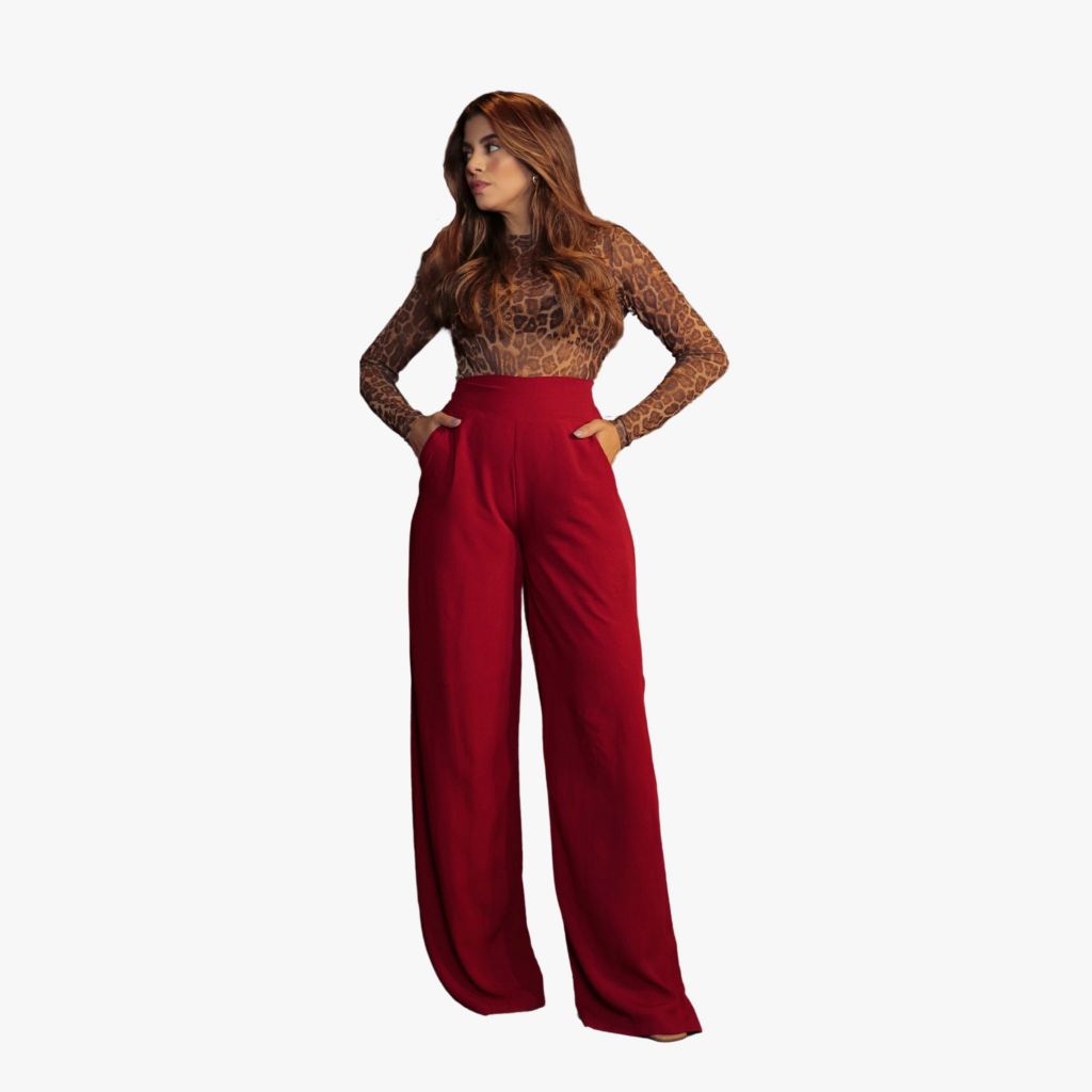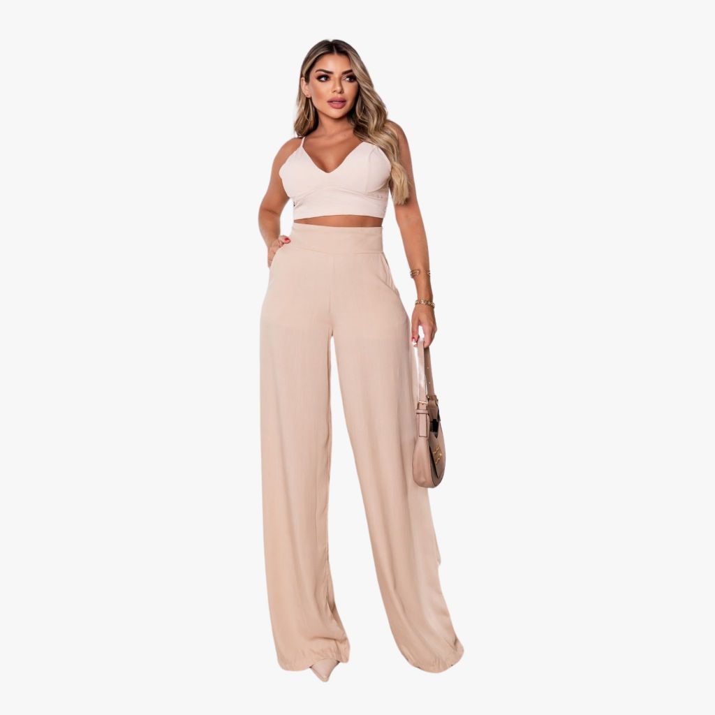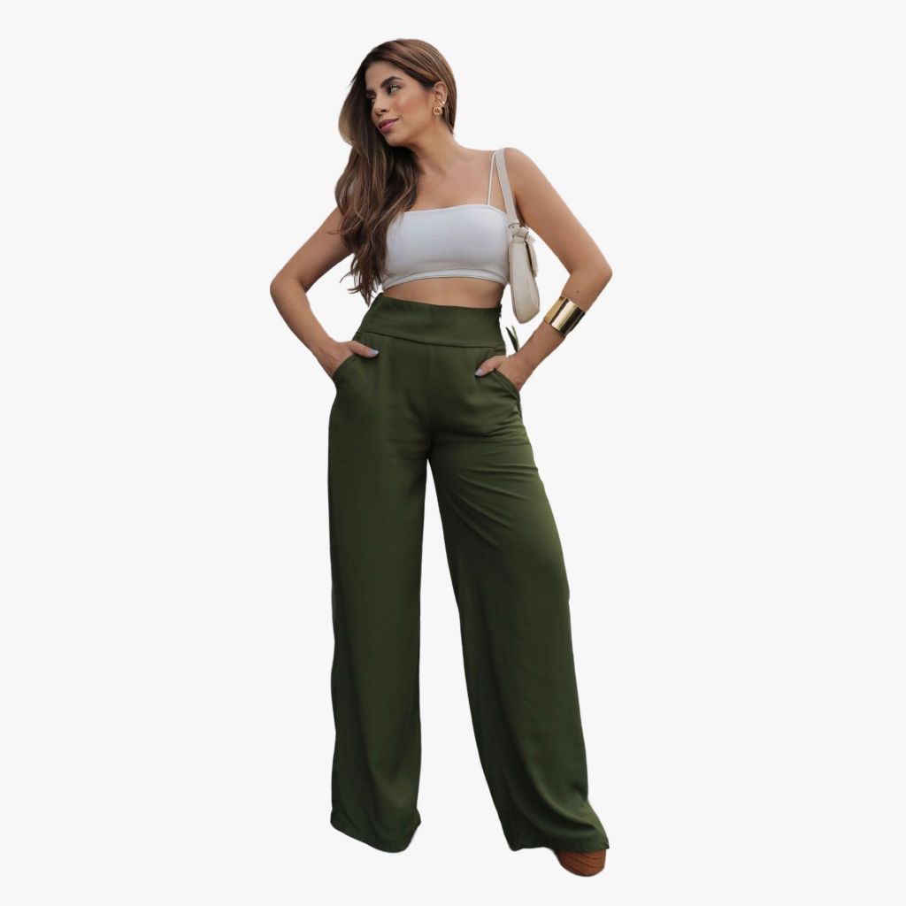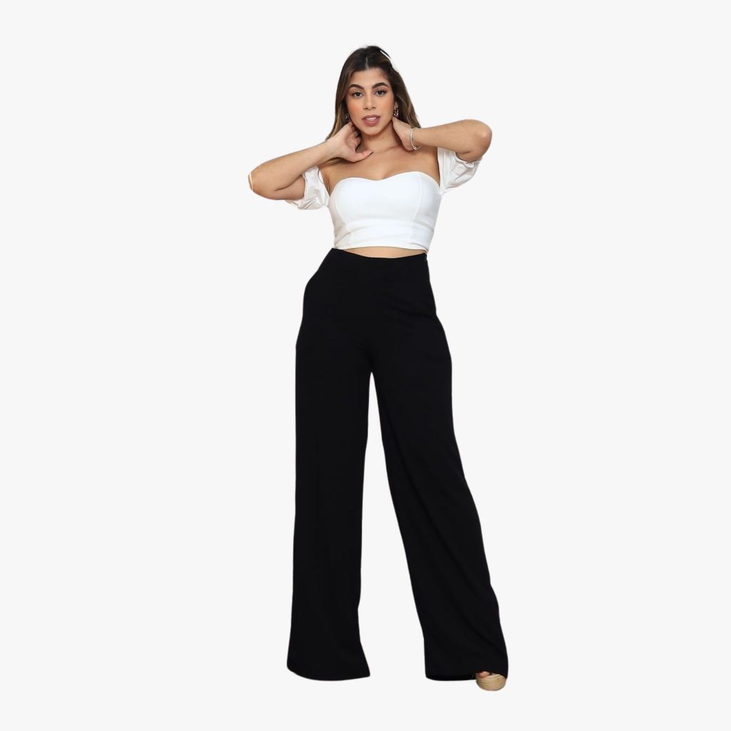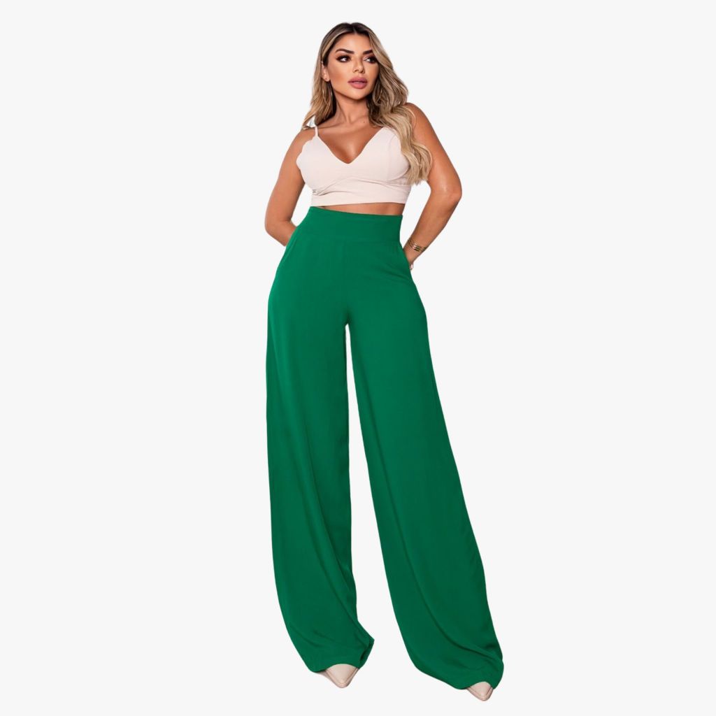Calça Pantalona Feminina Social Cintura Alta Viscolinho Forrada Elegante Trabalho Casual P M G