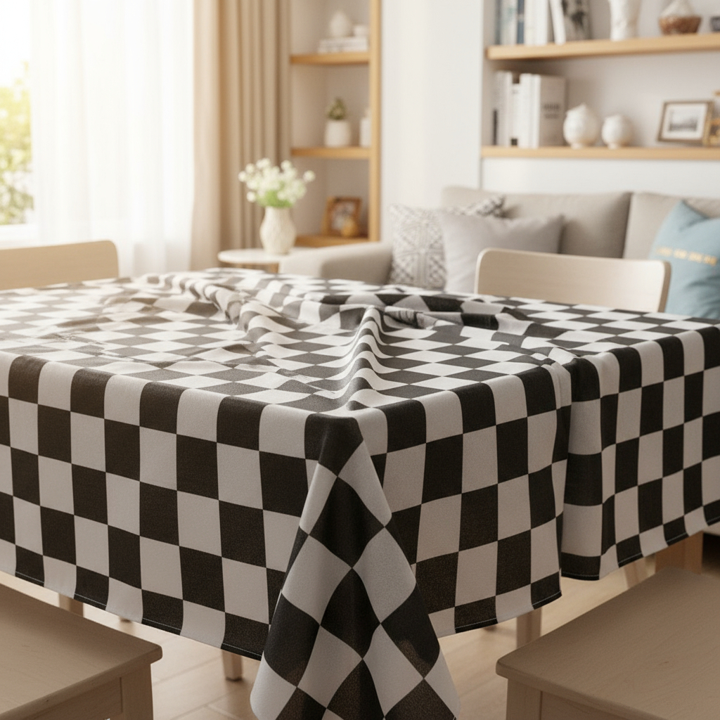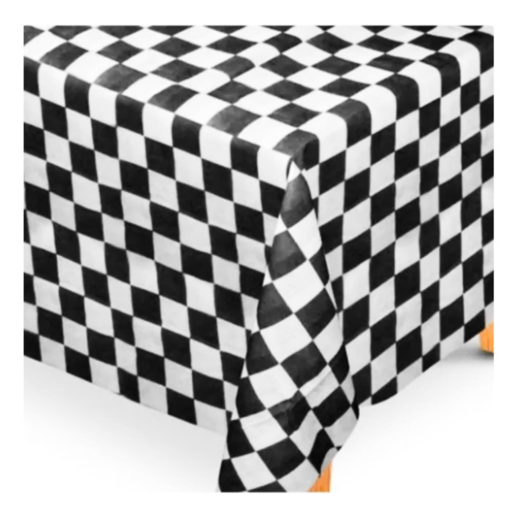Tnt Estampado Toalha De Mesa Quadriculado Xadrez Preto E Branco 5m x 1,40m Quadriculada Carros