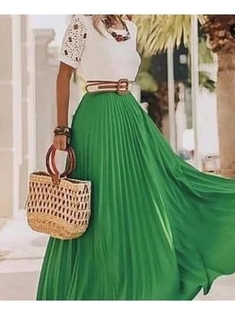 Saia Longa Plissada Rodada Tendencia Moda Evangelica Chic