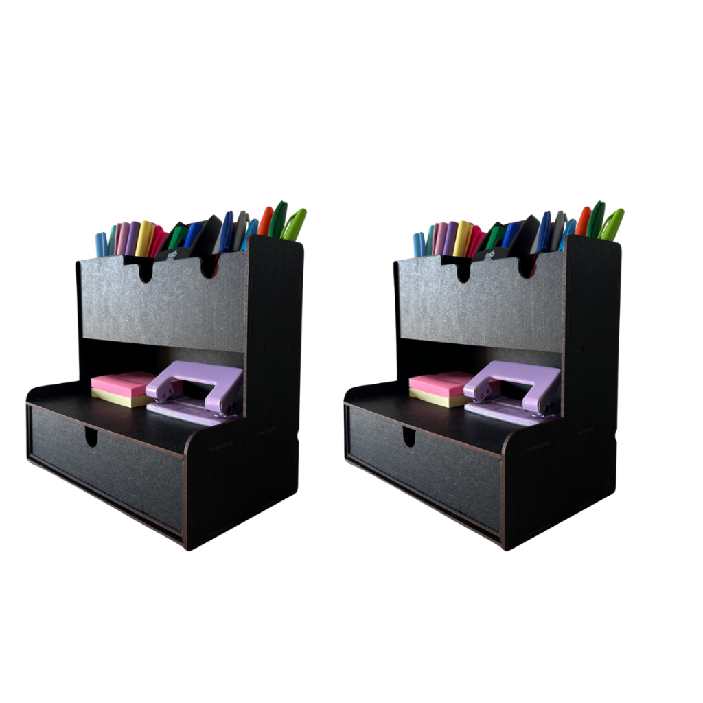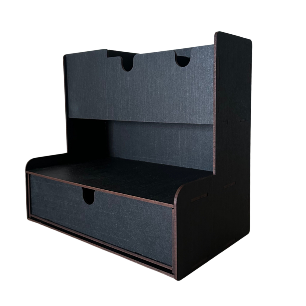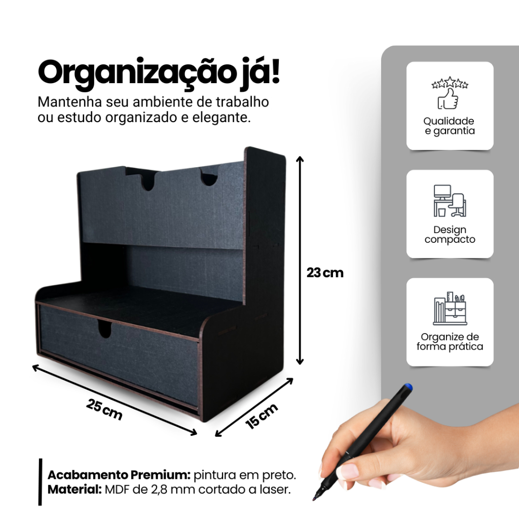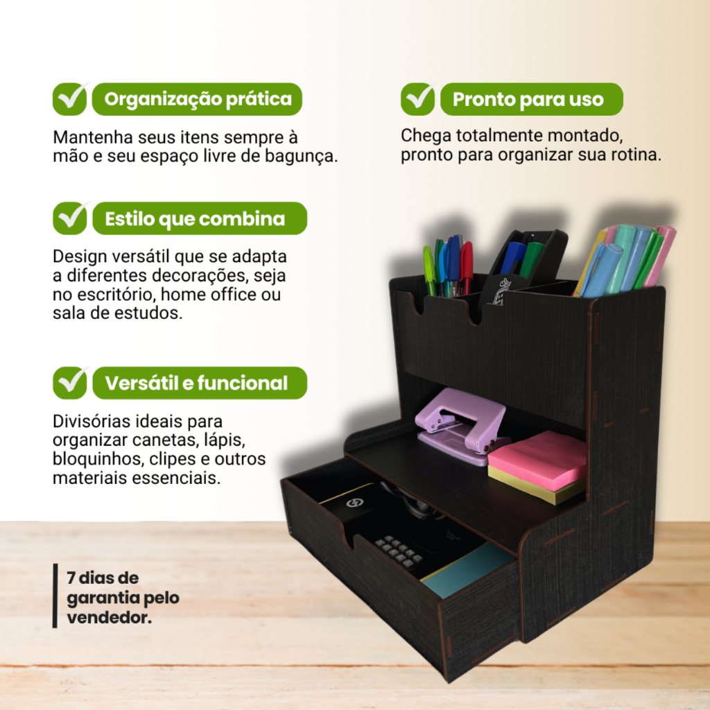 Organizador de Mesa em Madeira Preto – Porta-Treco e Porta-Lápis para Escritório e Home Office