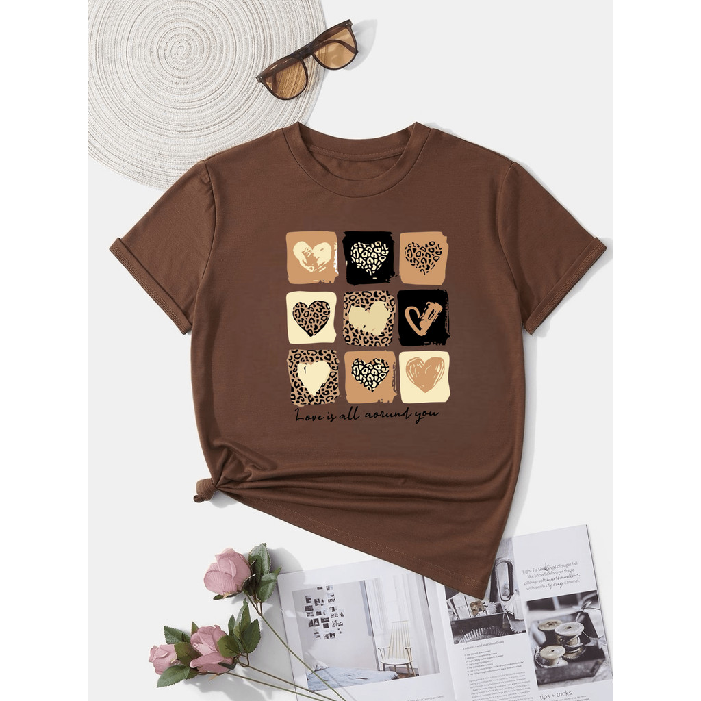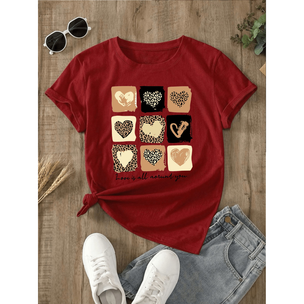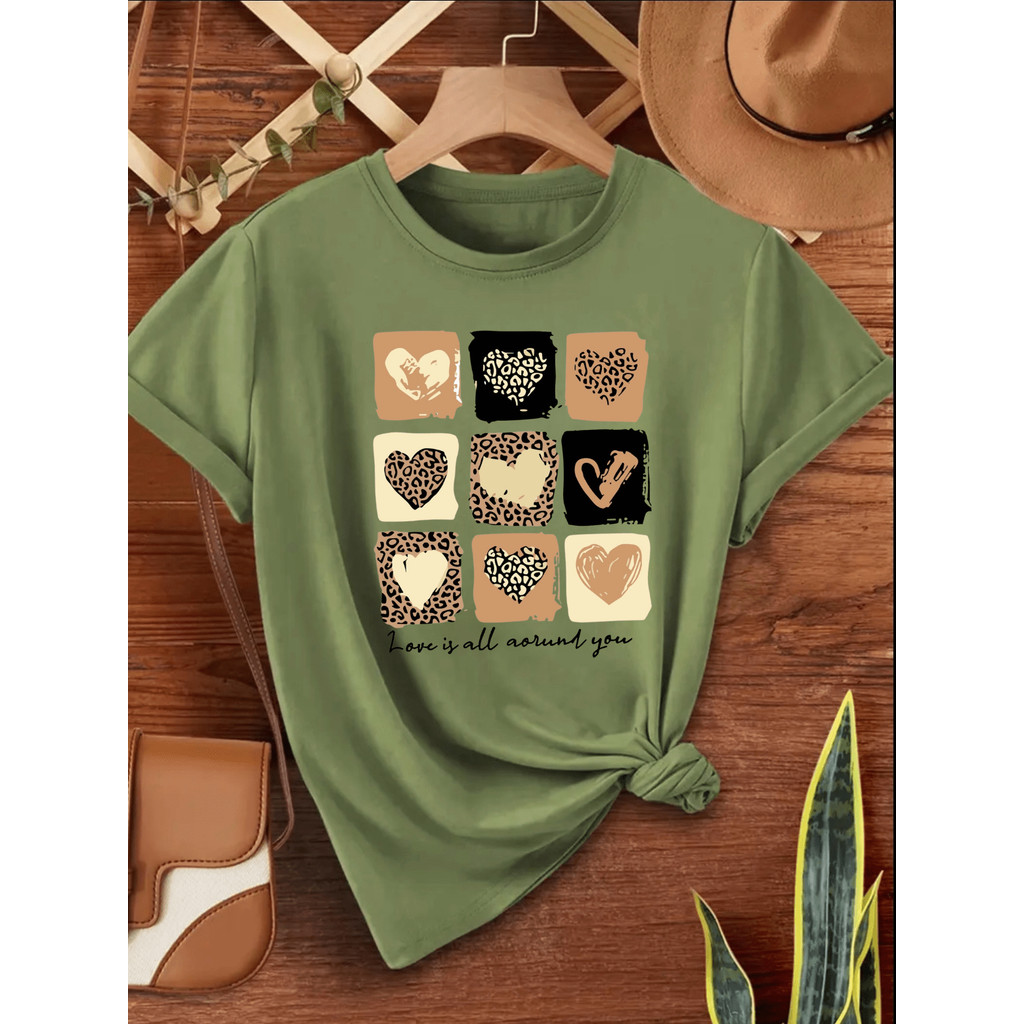 Camiseta T-shirt Love Coração Animal Print Tendencia Babylook 100% Algodão