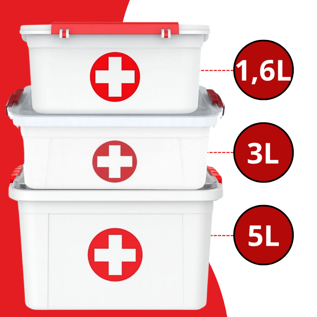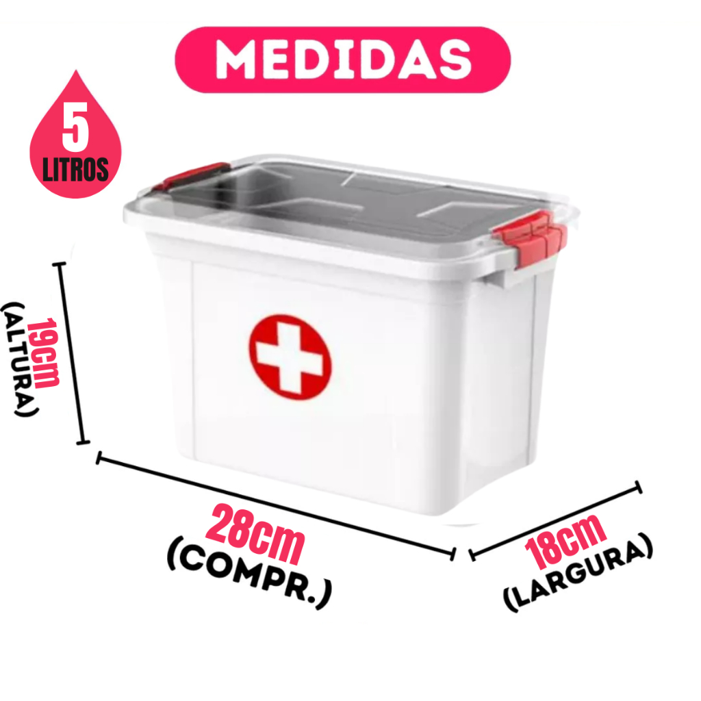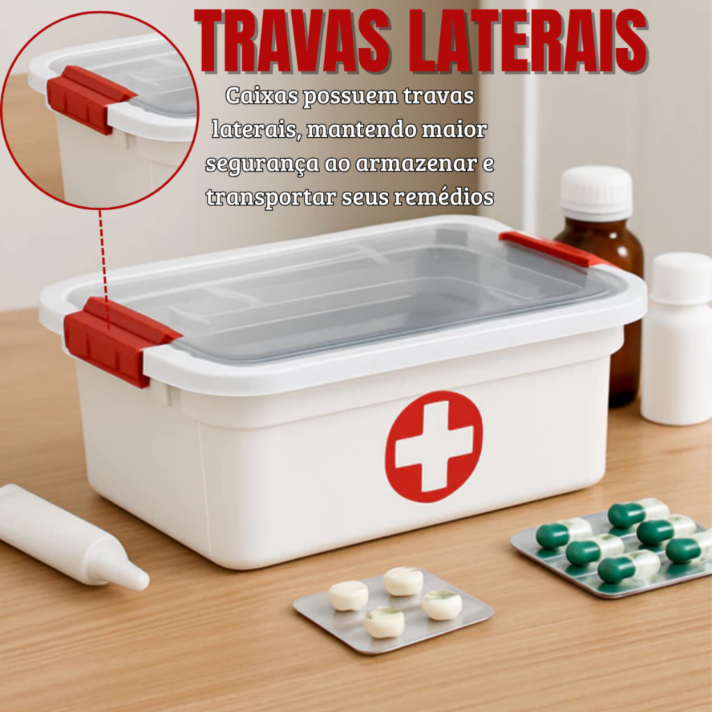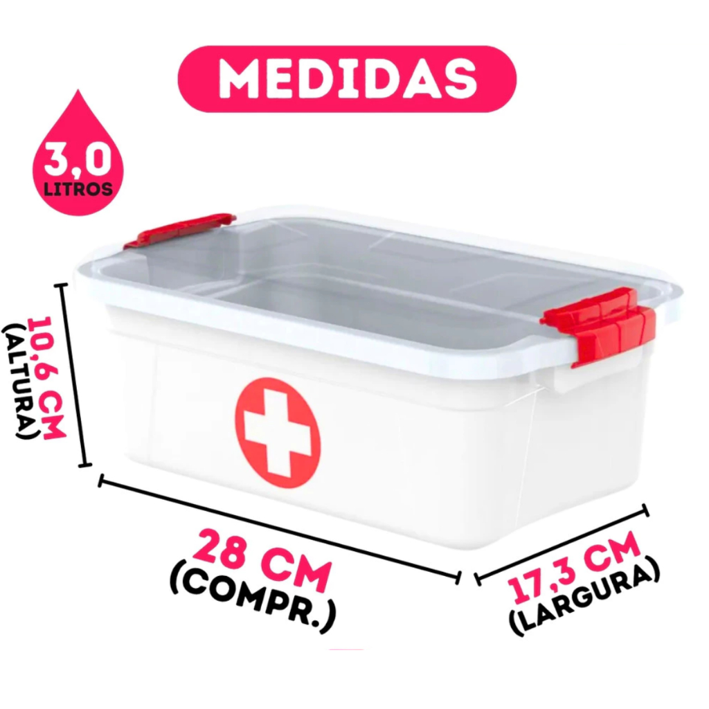 Kit 2 Caixa Organizadora Com Tampa e Travas Primeiros Socorros 1,6/3L/5L Para Medicamento E Curativo