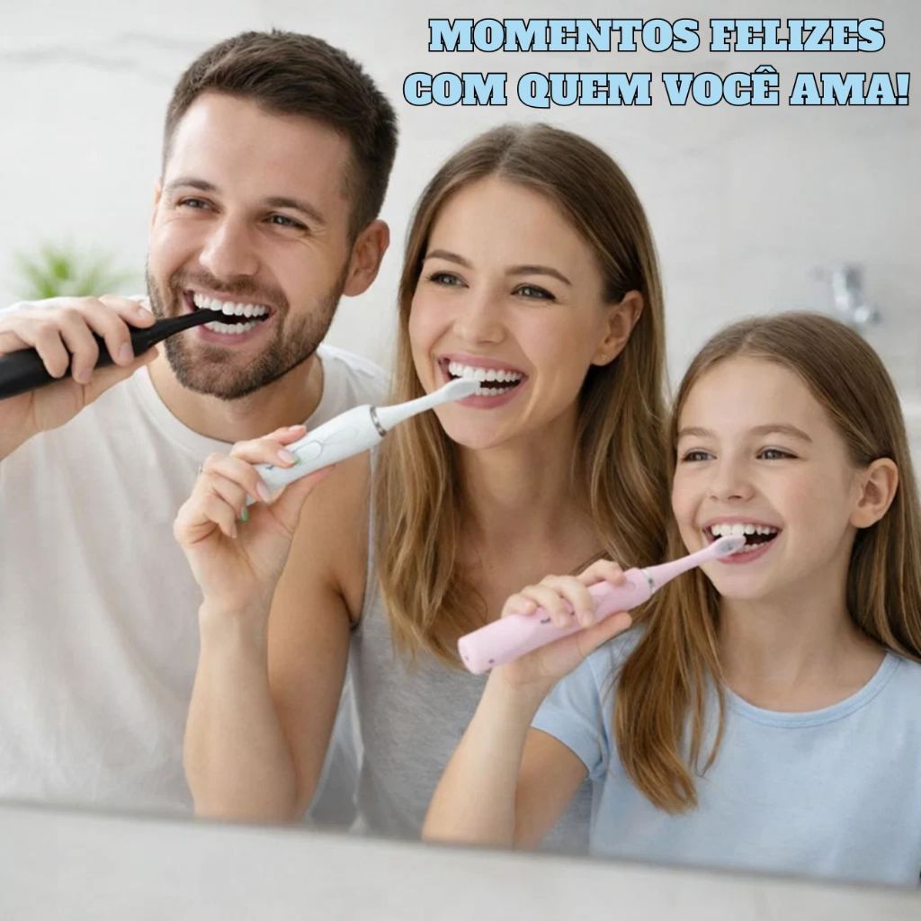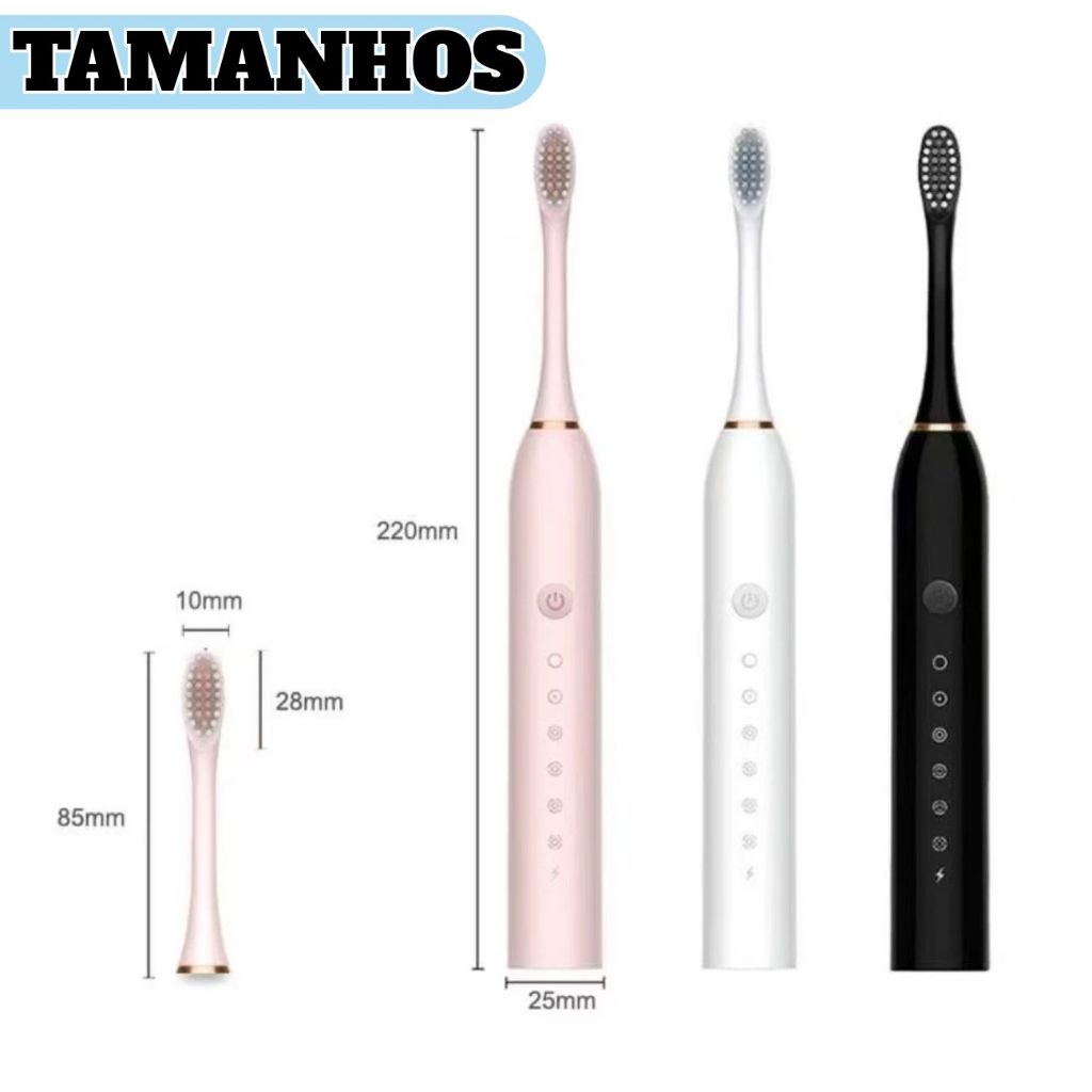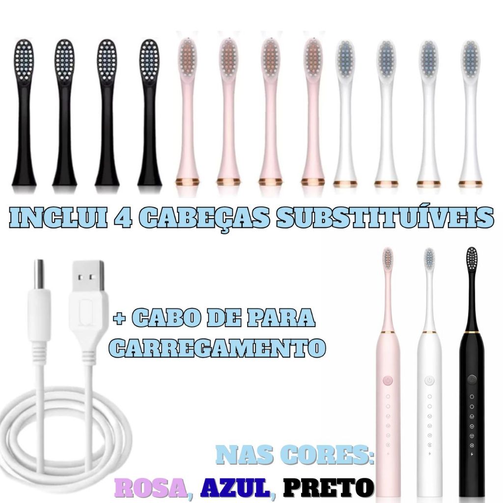 Escova De Dentes Elétrica Recarregável Sonic IPX7 Com Cabo Cor Branco Preto Rosa Com 4 Cabeças