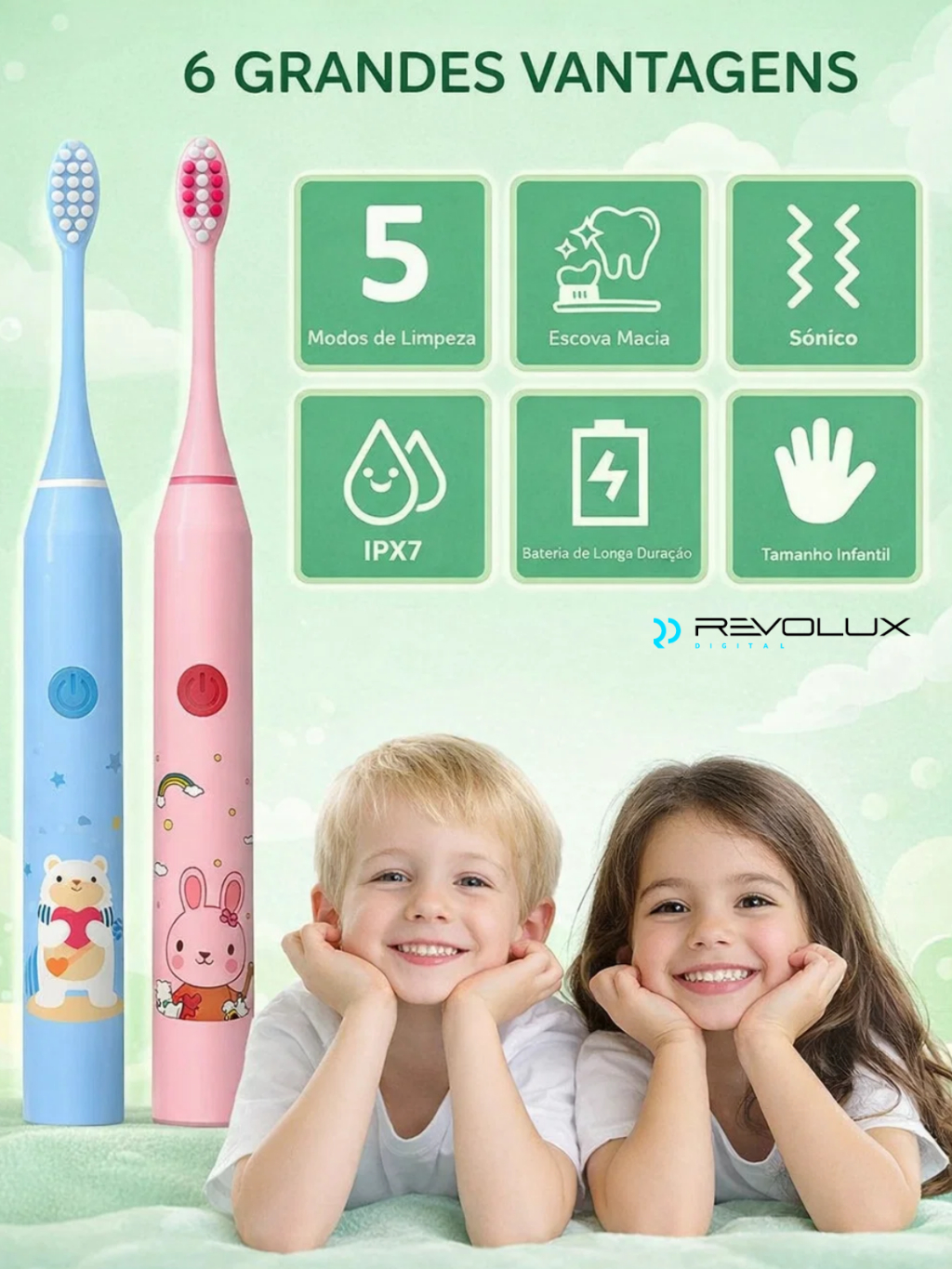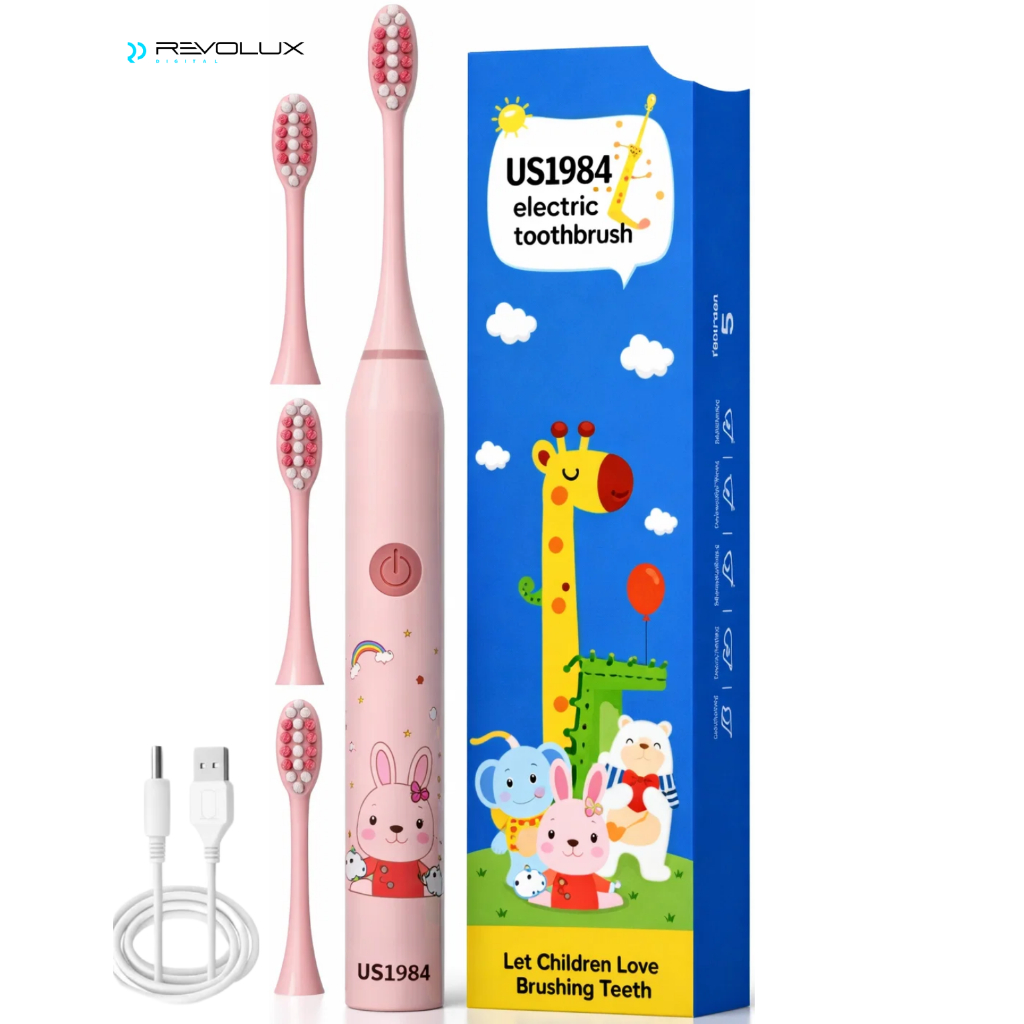 Escova De Dente Elétrica Infantil Ultra-Sônica P/ Crianças Dental cústica Onda Fofa Cerdas Suaves Limpa Cuidados C Cabo