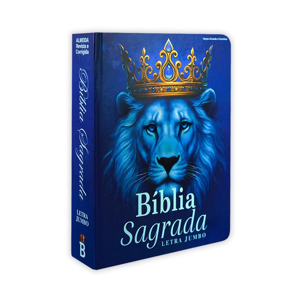 Bíblia Sagrada Letra Jumbo Leão Azul Real com Harpa e Índice Bíblico