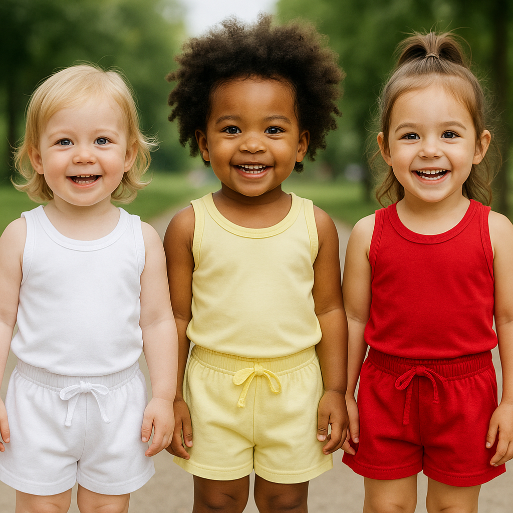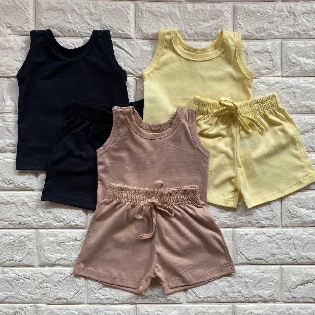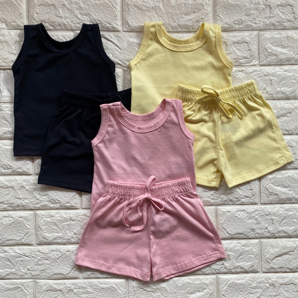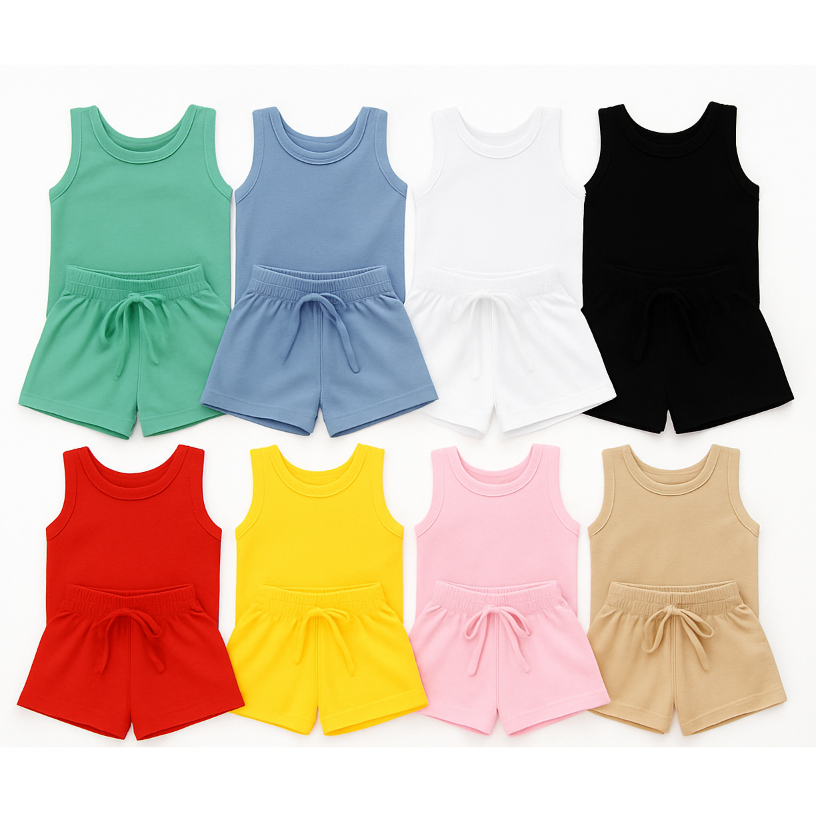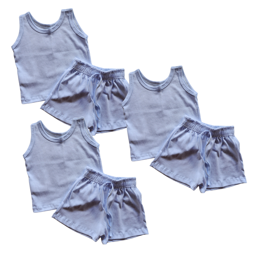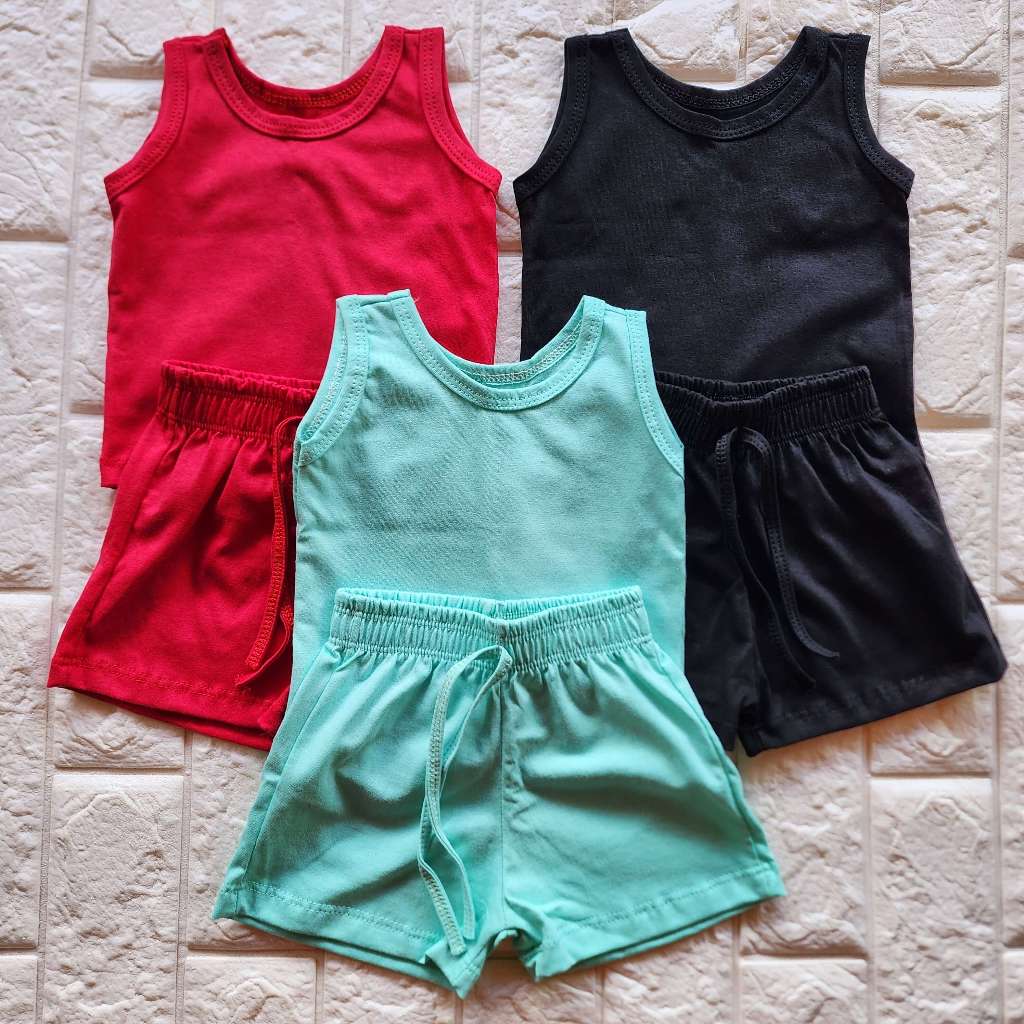 KIT 3 CONJUNTO INFANTIL 6 PEÇAS CAMISETA REGATA E SHORT BEBÊ MENINO MENINA BÁSICO LISO VERÃO