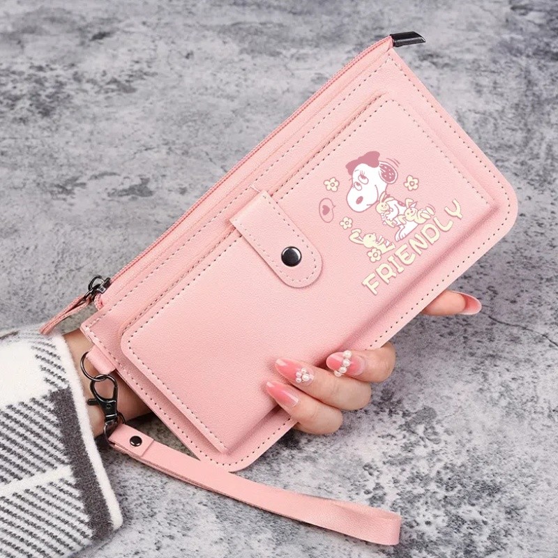 Carteira Snoopy Feminina Longa Multifuncional Cartão De Armazenamento Multi Bolsa De Viagem