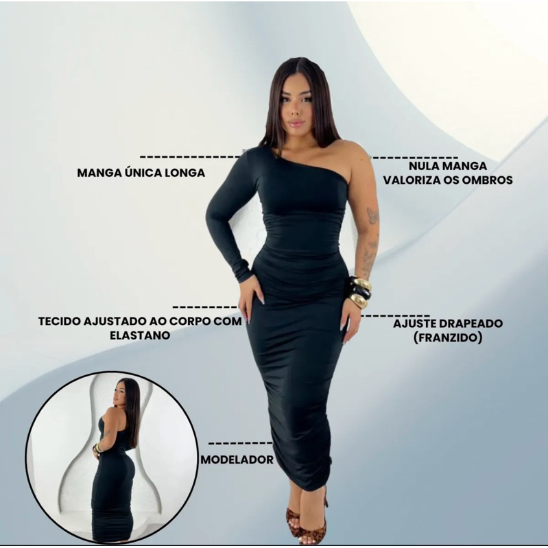 Vestido Longo Feminino Franzido Um ombro só Outono Inverno