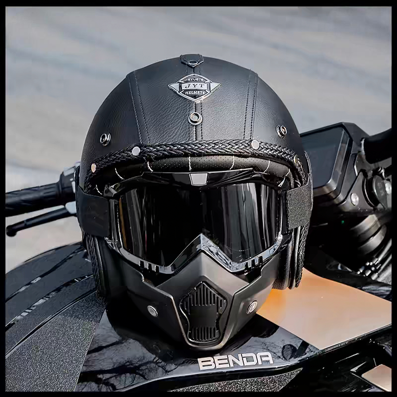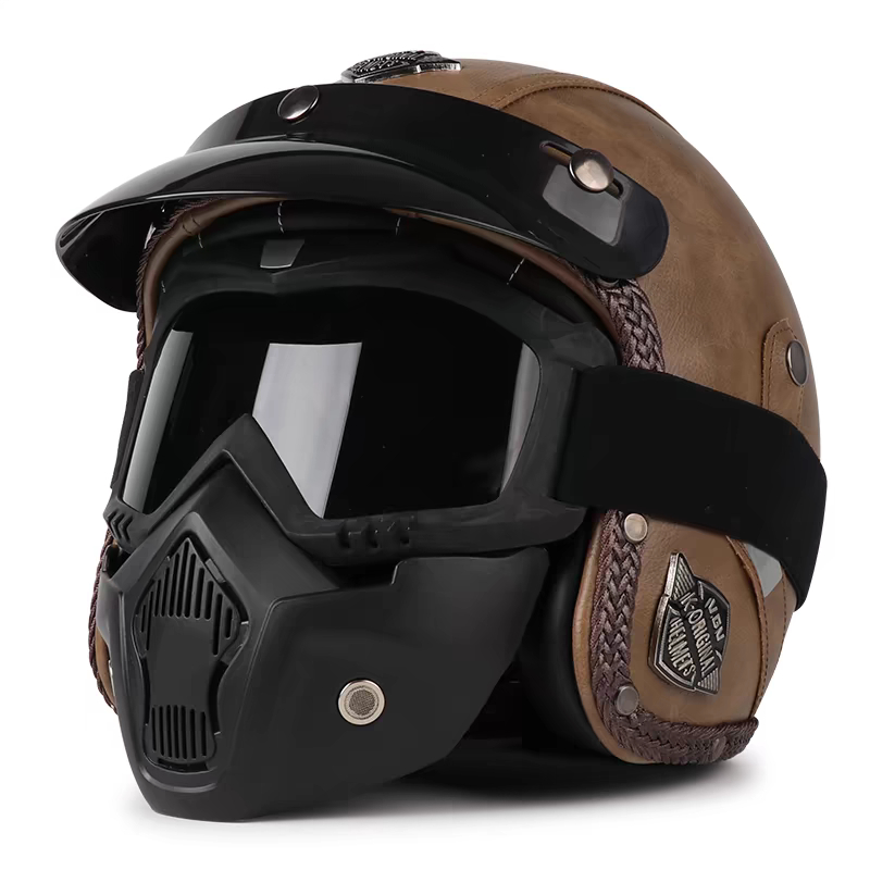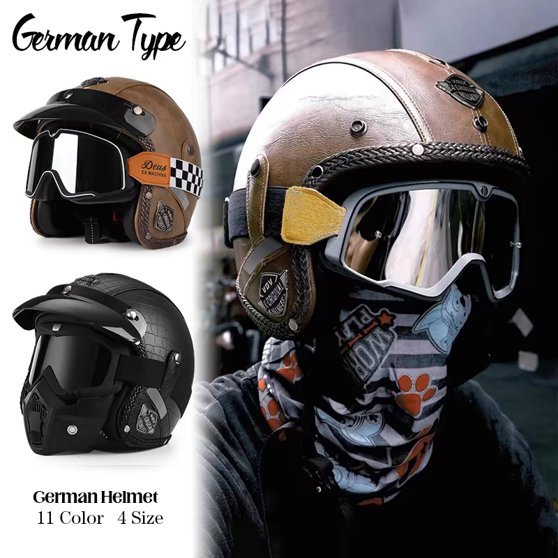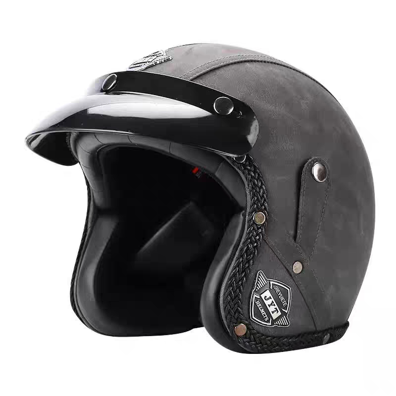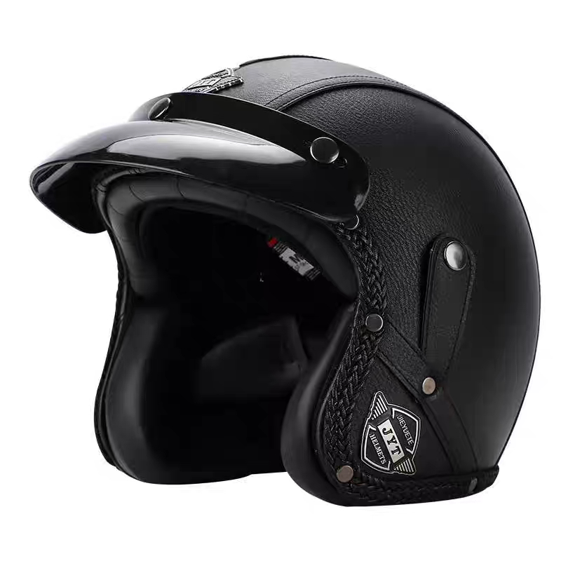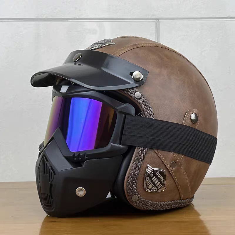 Capacete Retrô Para Motocicleta , Capacetes De Couro 3/4 , Viseira , Oldtimer , Meia Concha