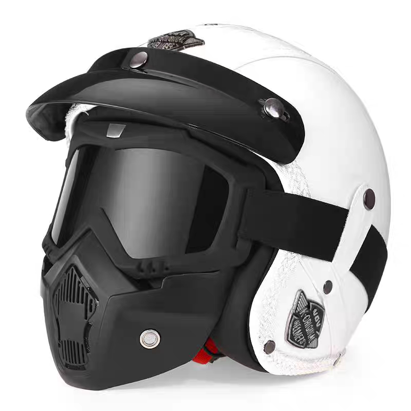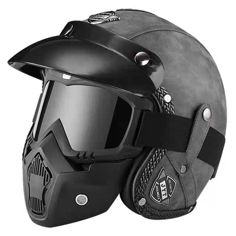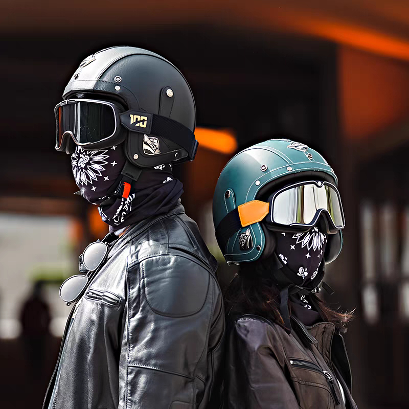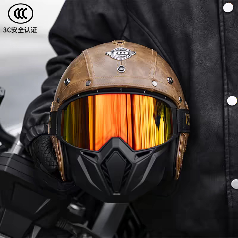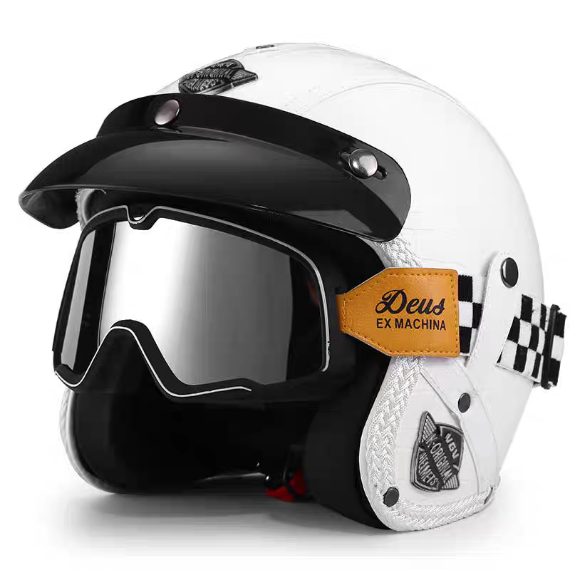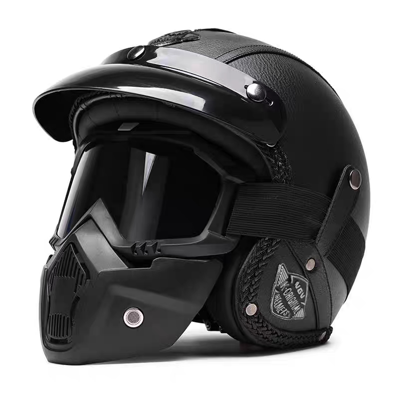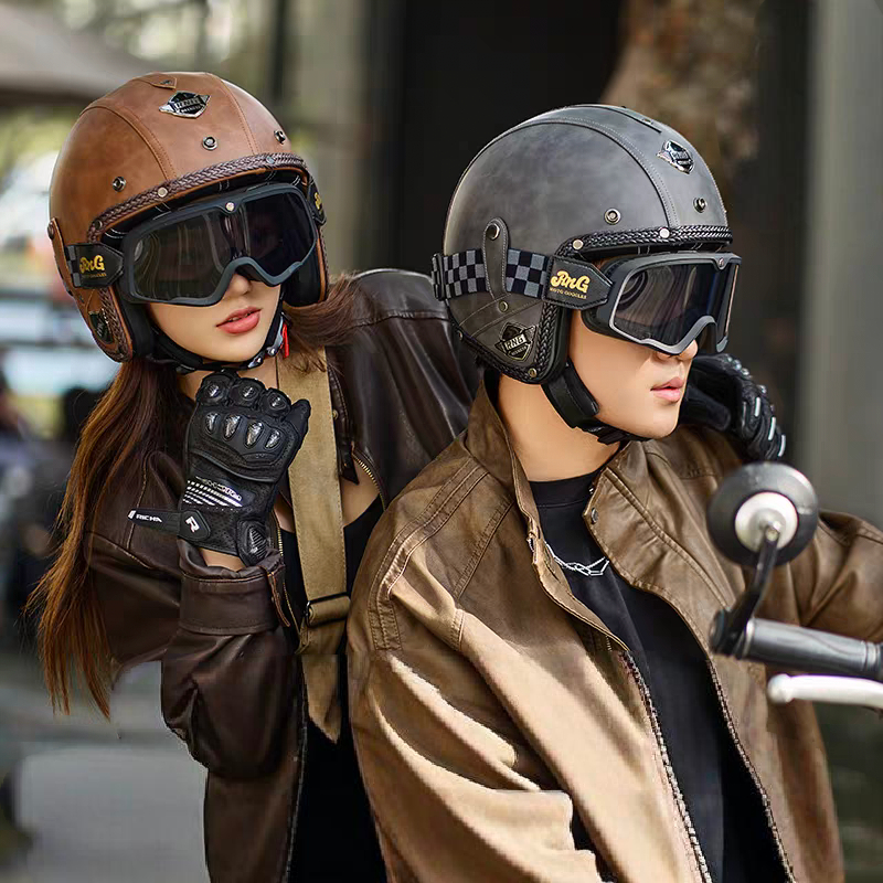 Capacete Retrô Para Motocicleta , Capacetes De Couro 3/4 , Viseira , Oldtimer , Meia Concha