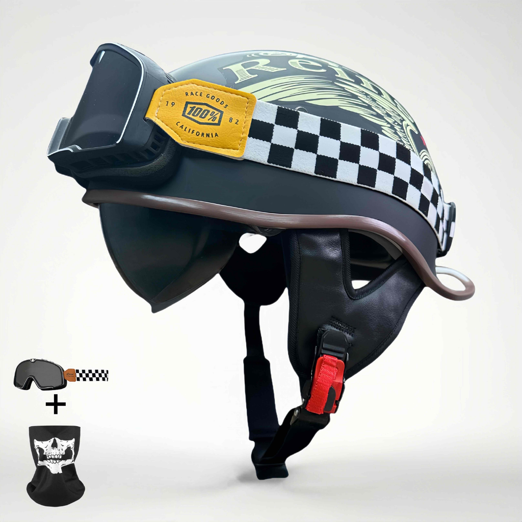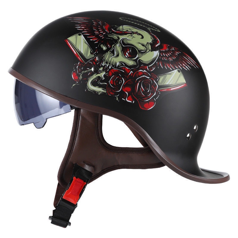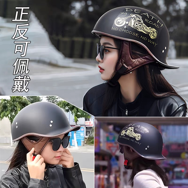 Motocicleta Meio Capacete Quatro Estações Retro Moda Príncipe Locomotiva Cabeça Cinza Veículo Elétrico Masculino Feminin