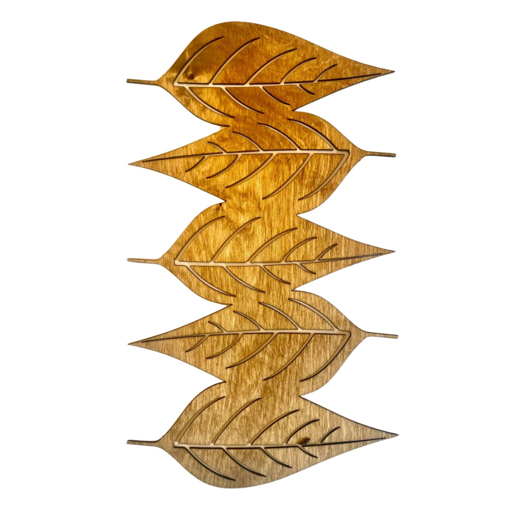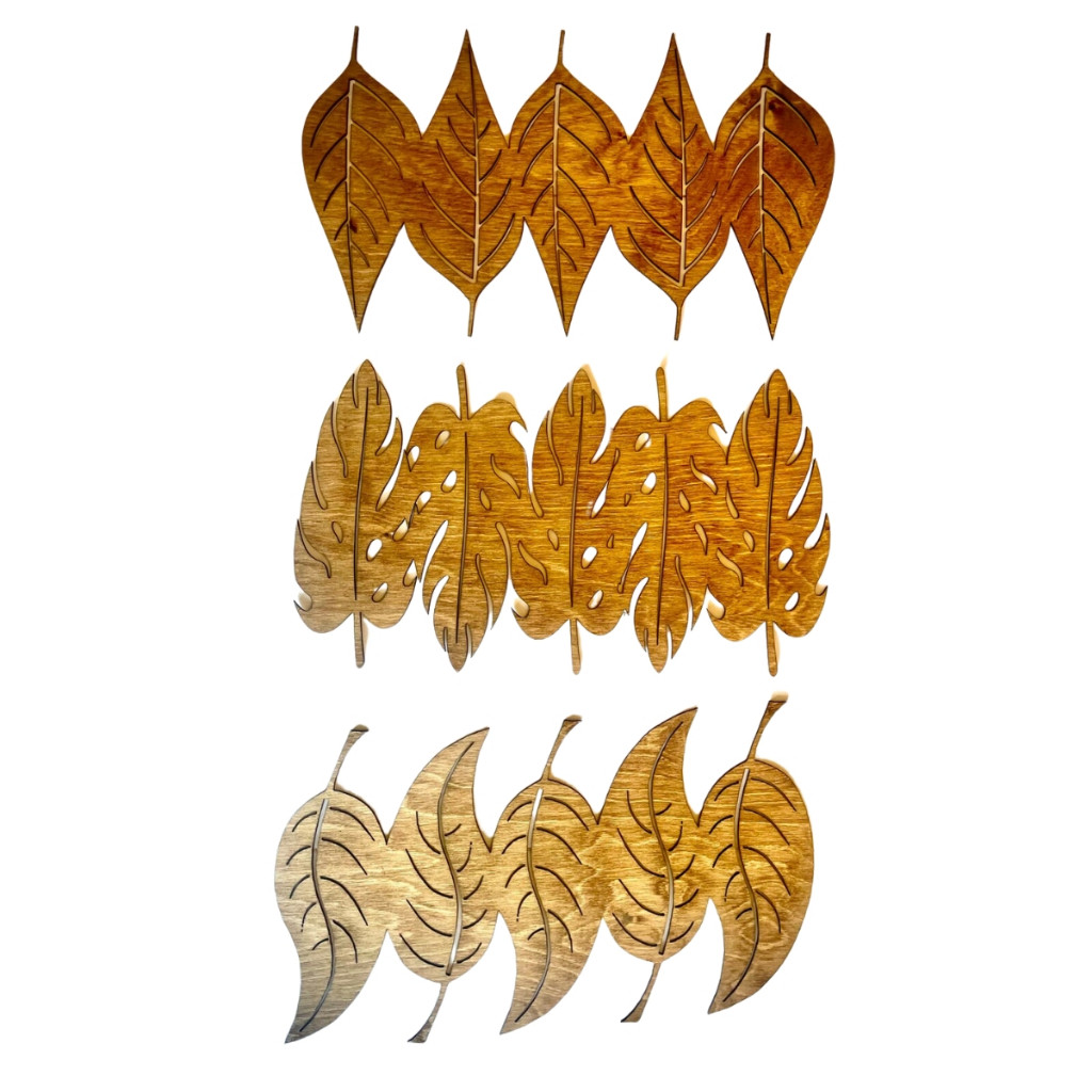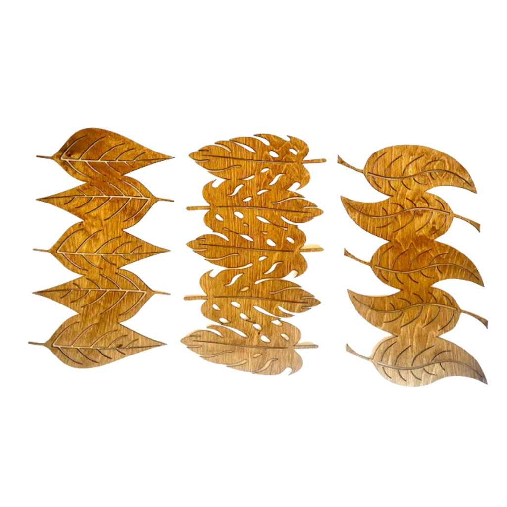 Kit 3 Quadros Folhagens Folhas Diversas Vazadas Moderna Aplique de Parede em MDF 3mm Cru 80cm x 40cm