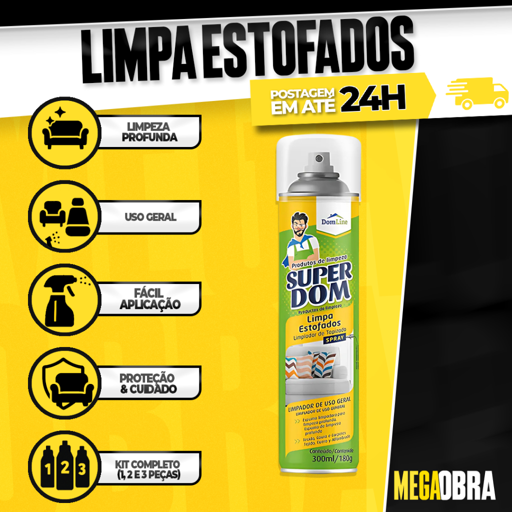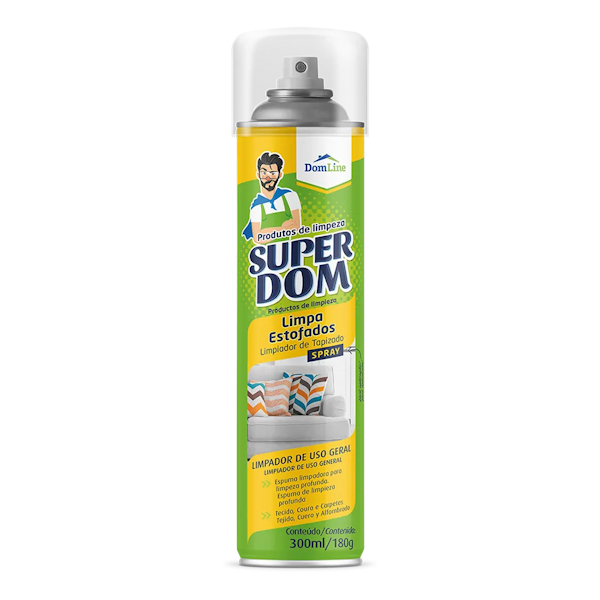 Limpa Estofados a Seco Spray Super Dom 300ml com Escova Tira Manchas