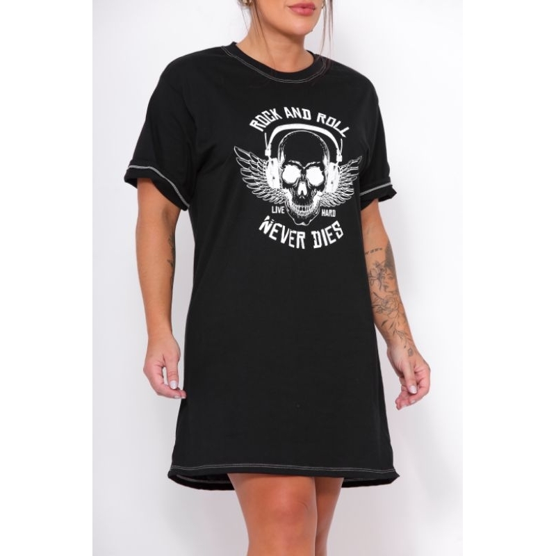 Vestido T Shirts Rock Estampa Caveira