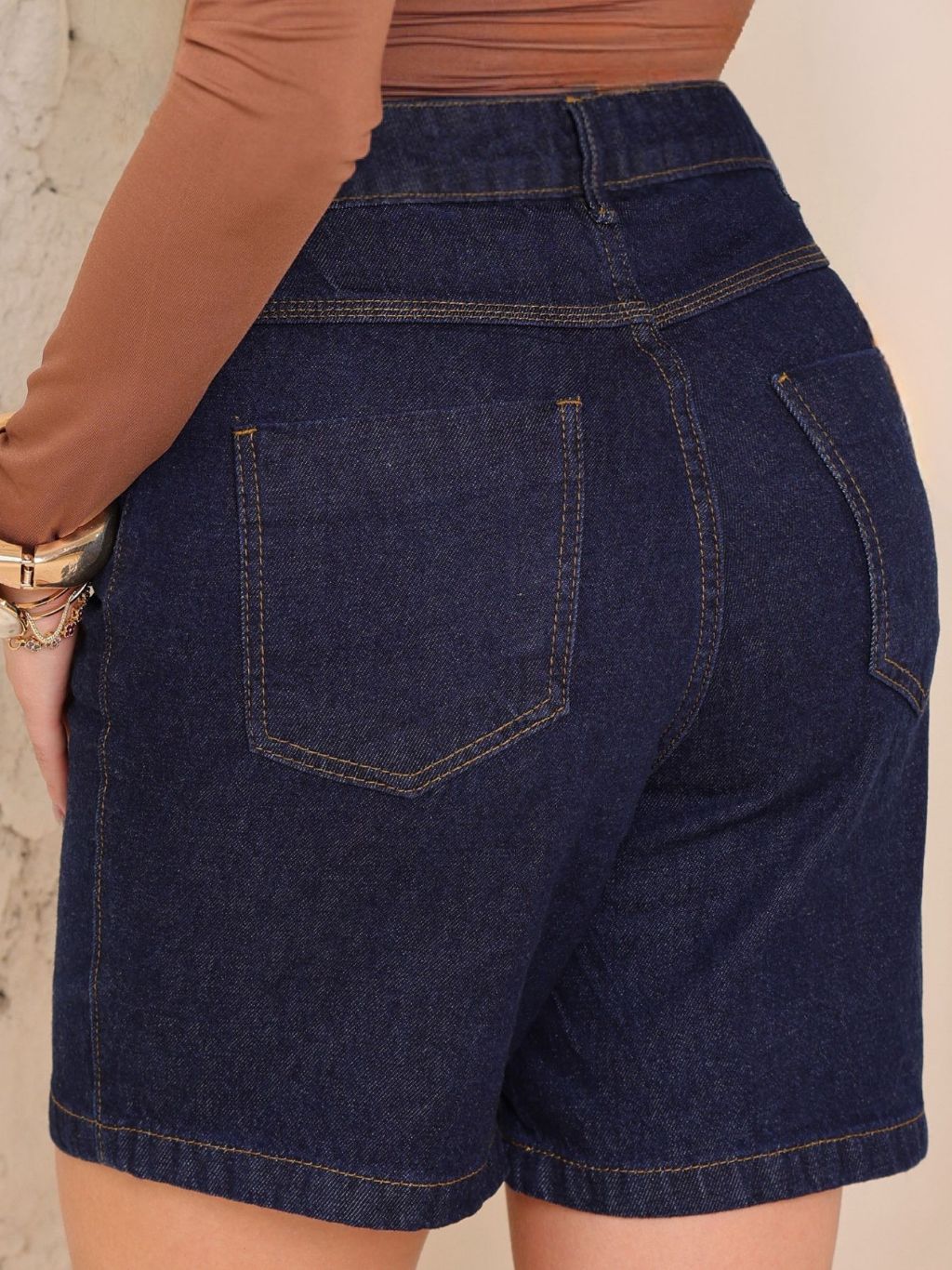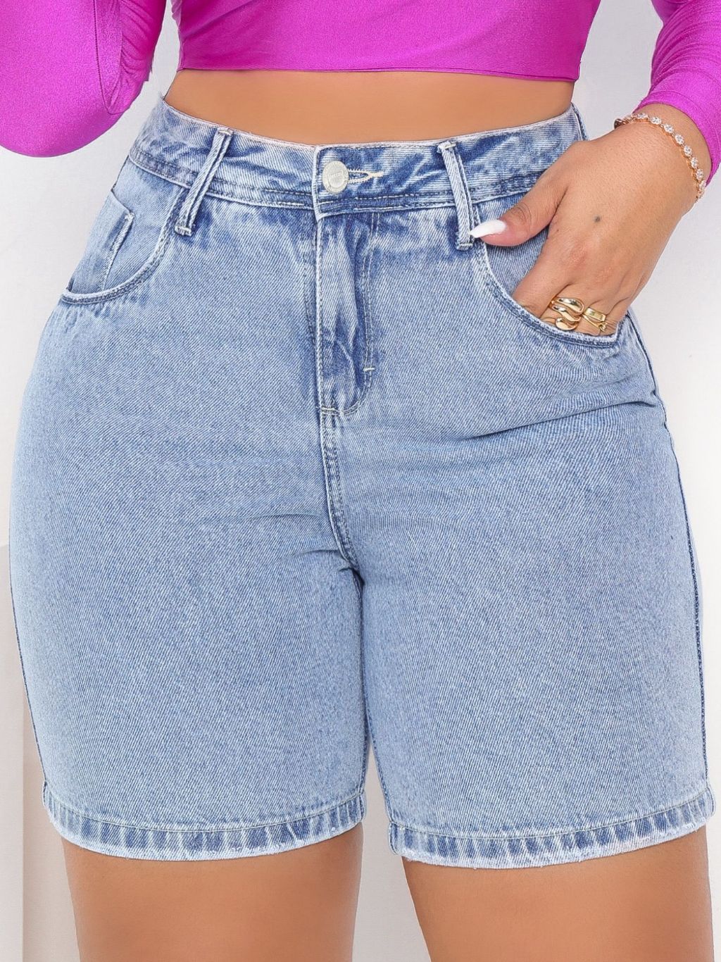 Bermuda Feminina Mom Jeans Levanta Bumbum Cintura Alta