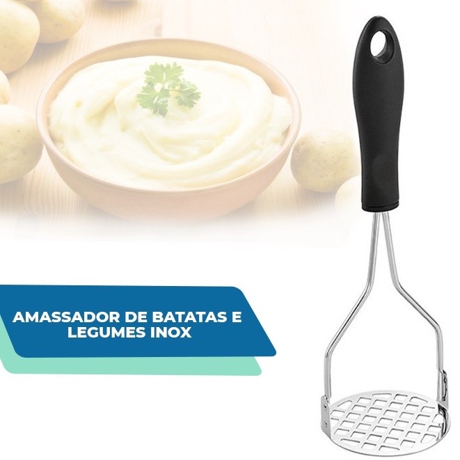 Amassador Batatas Espremedor Manual Legumes Multiuso Aço Inox Com Cabo Plastico Cozinha Multiuso