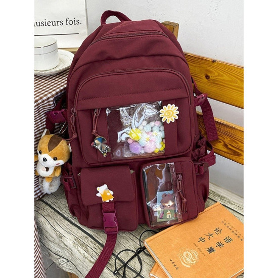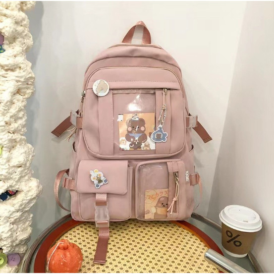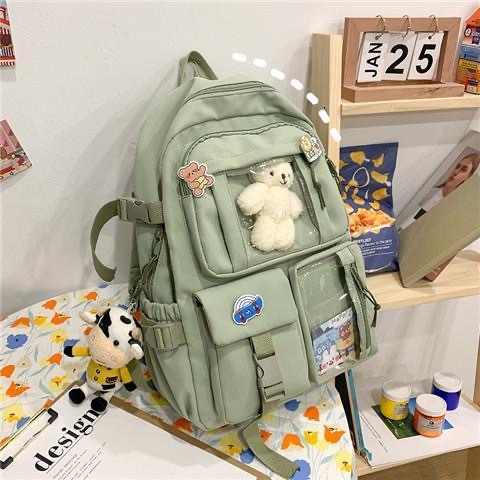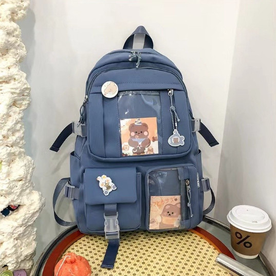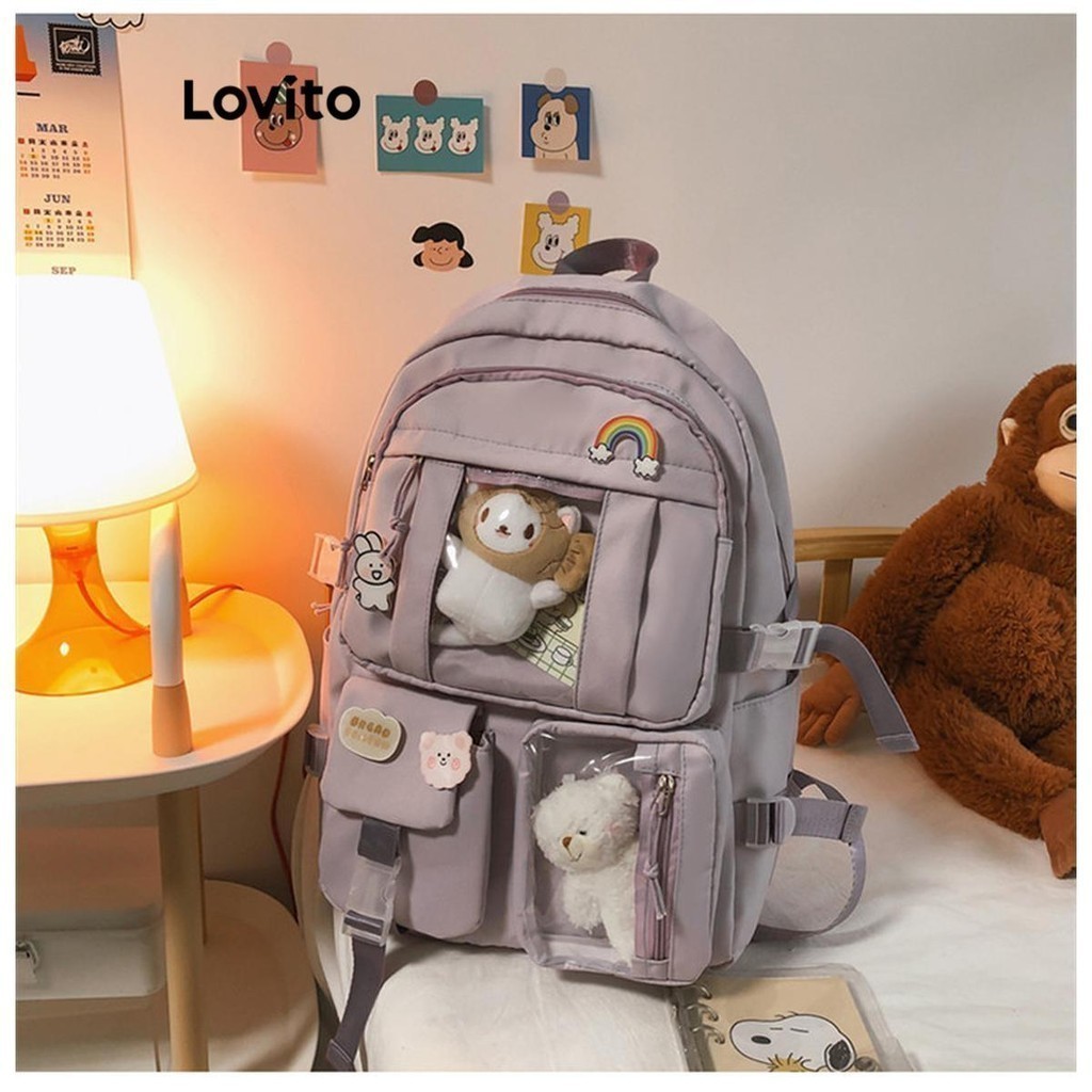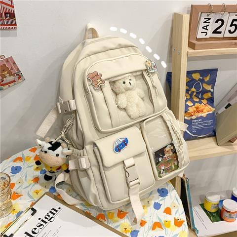 Mochila fofa de desenho ursinho animado com zíper e alta capacidade com vários bolsos para mulheres