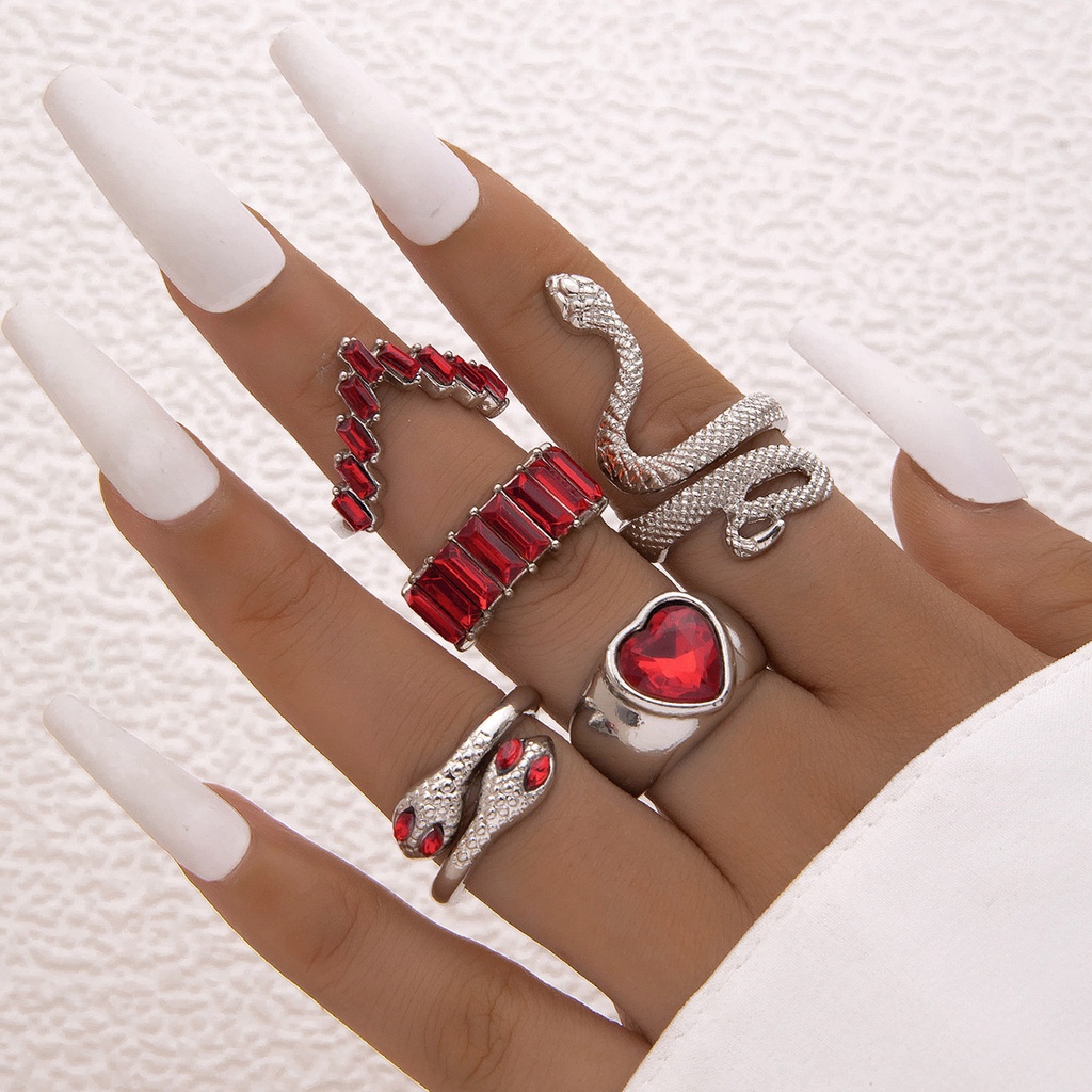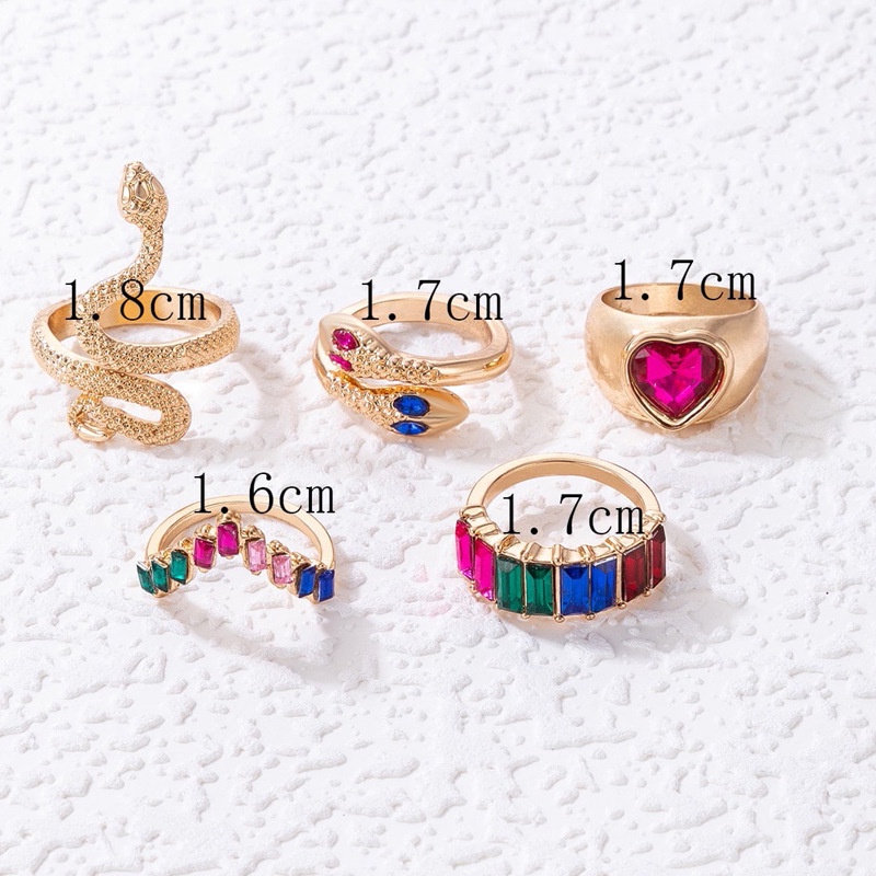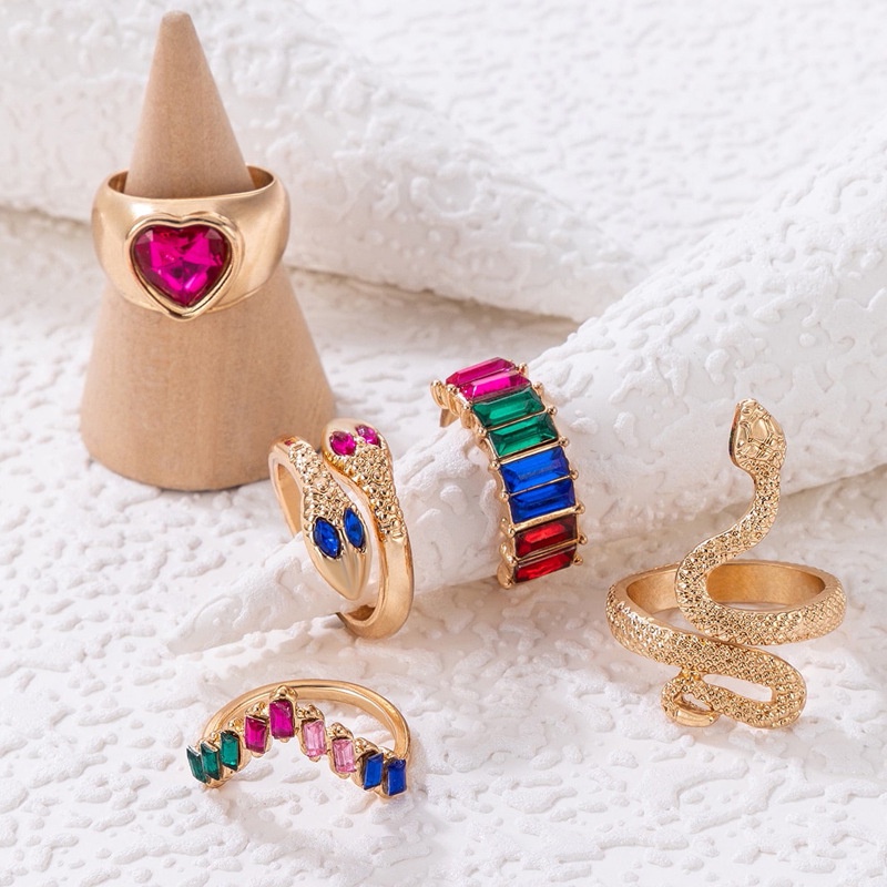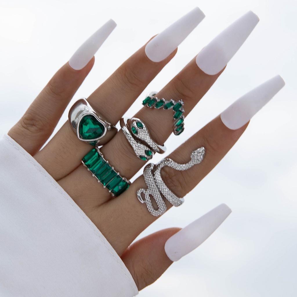 Jóias da Moda Européia Americana Jóias Anel Jóias em Forma de Cobra Imitação de Amor Diamante Esmeralda ins Style Five-Piece Ring Fêmea