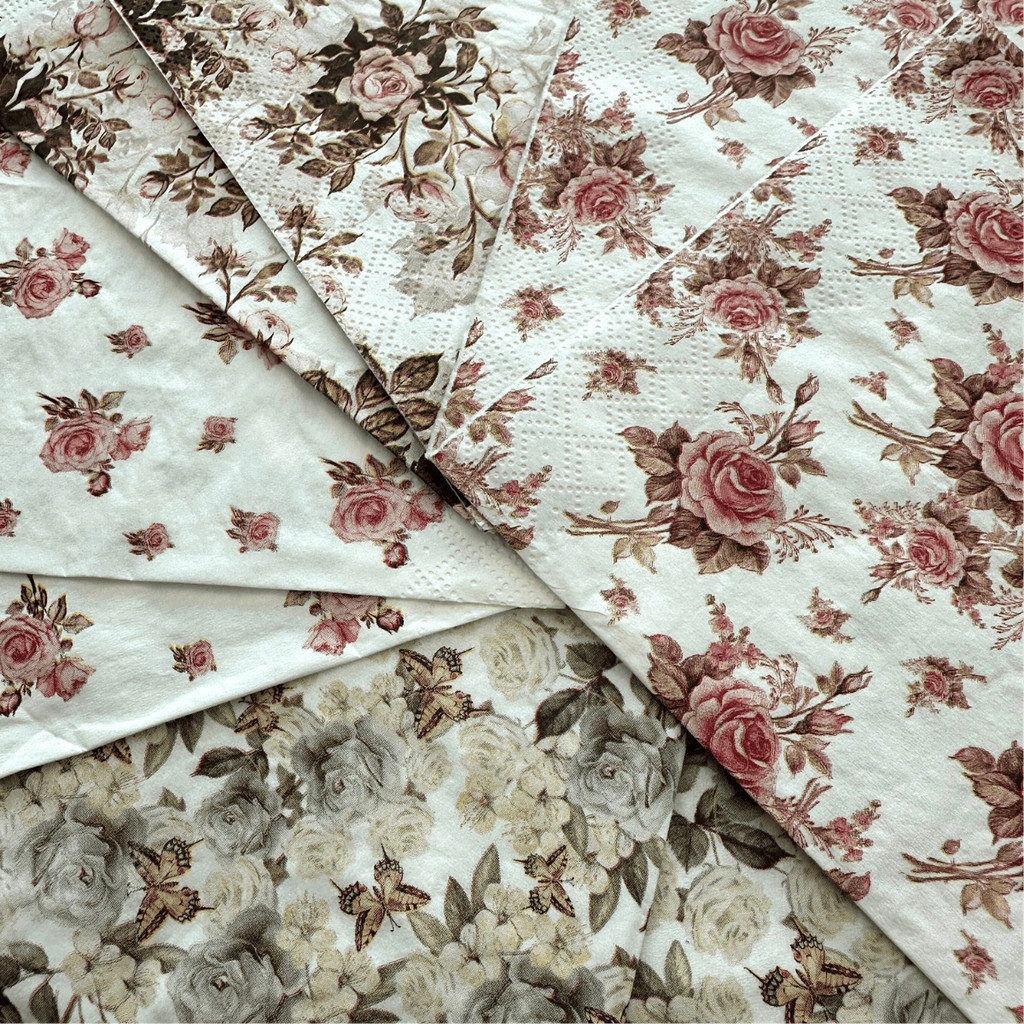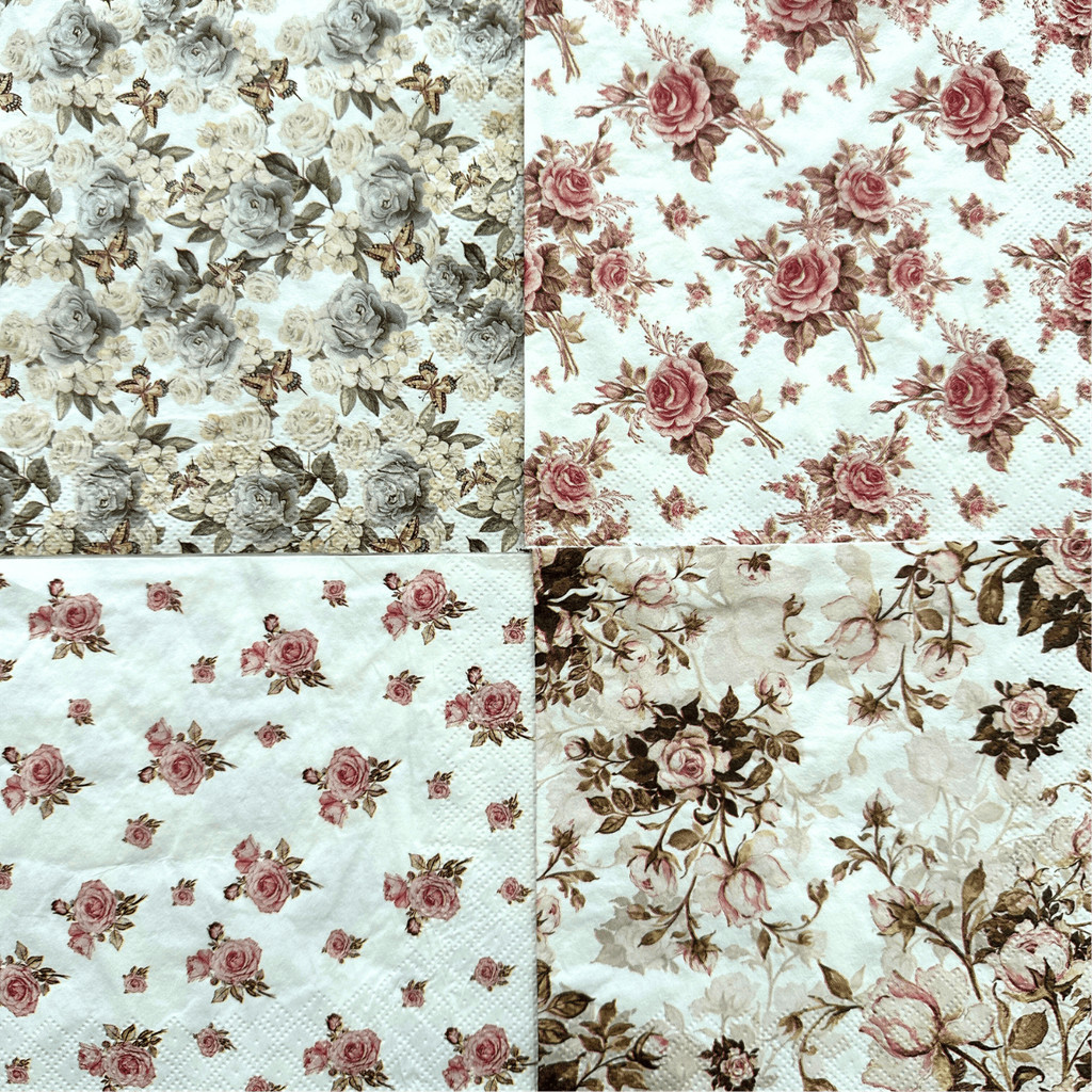 Kit de 8 Guardanapos Decorados Florais para Decoupage e Artesanato