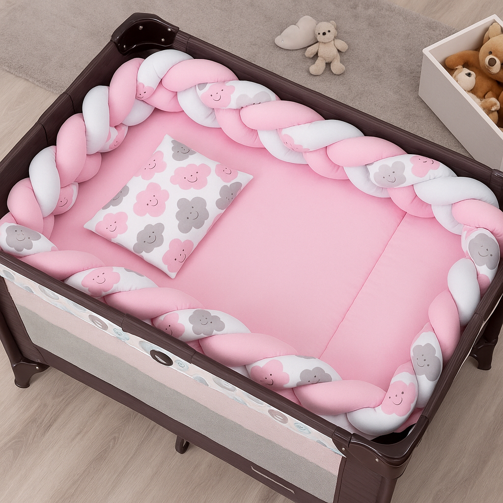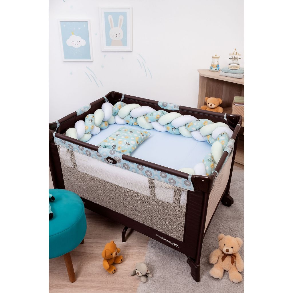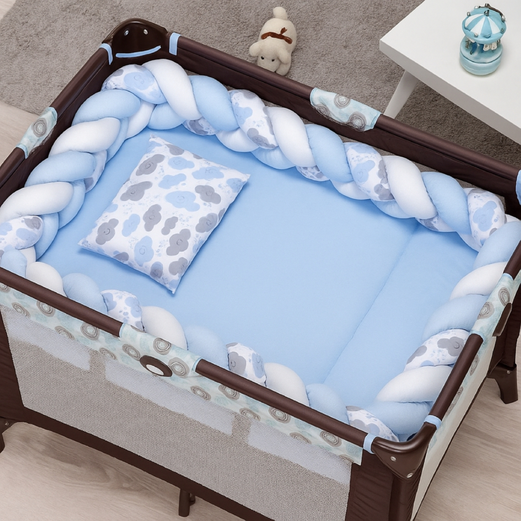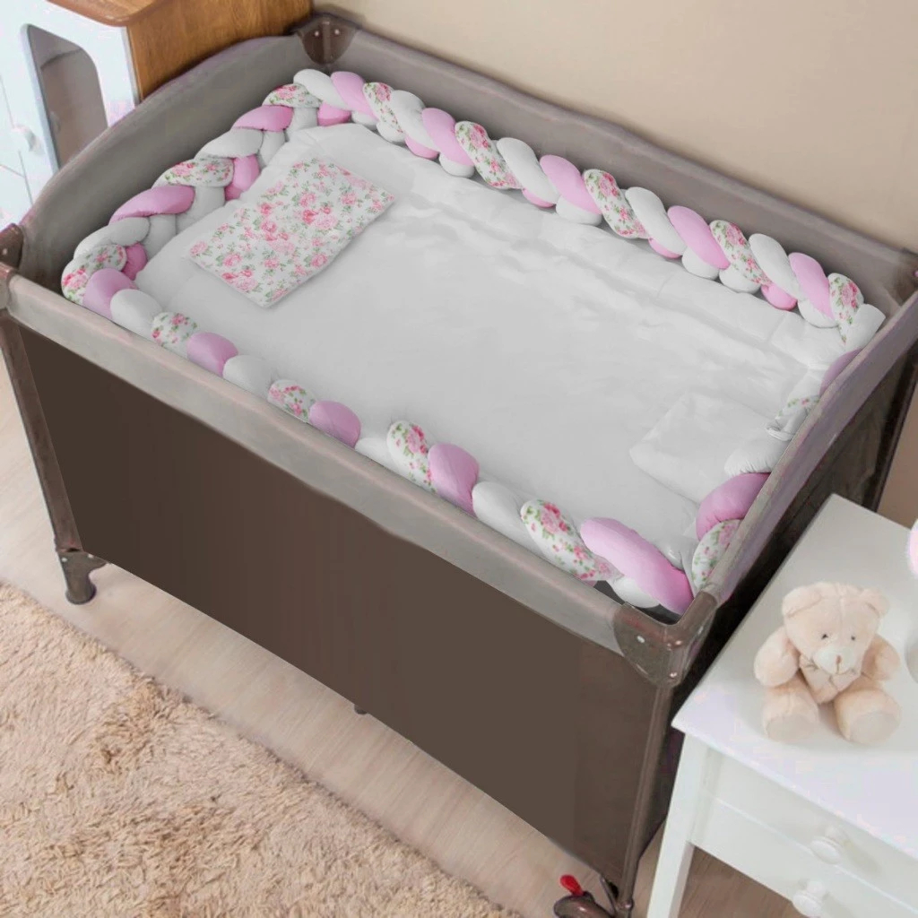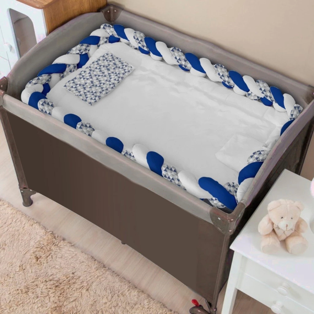 Kit Berço Desmontavel de Chiqueirinho de Menino 5 Peças Com Trança