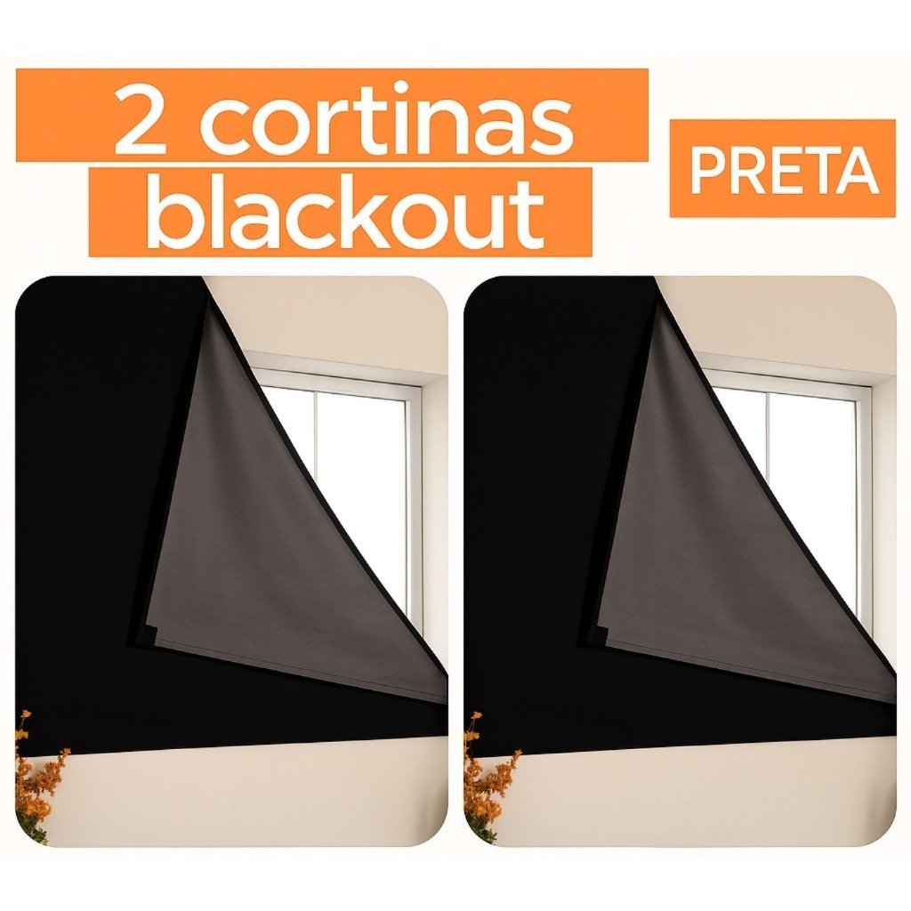 Kit 2 Cortinas Painel Blackout com Velcro para Sala Quarto Cozinha Varias Cores