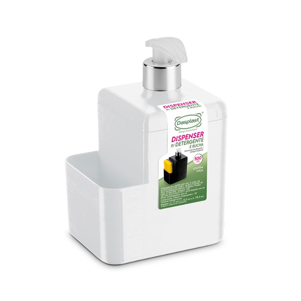 Porta Detergente e Bucha Dispenser 500ml 2x1 Qualidade DasPlast Detergente Sabão Cozinha Bancada