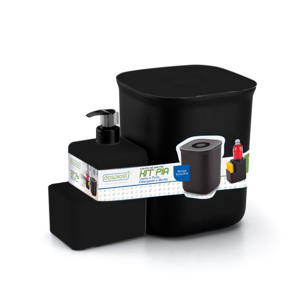 Kit Lixeira 4L com Dispenser 500ml Detergente Cozinha Bancada Pia