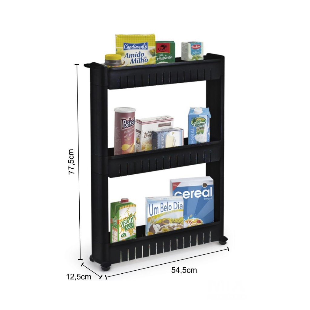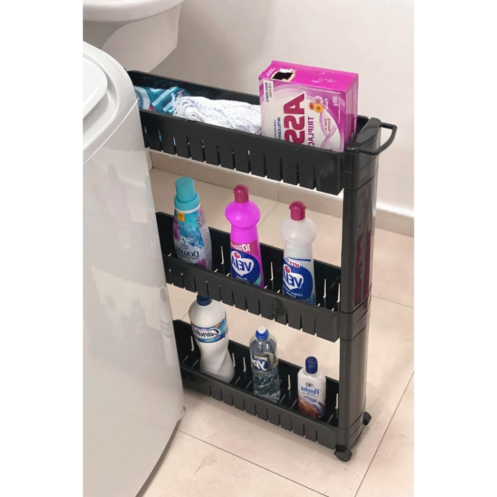 Prateleira Preta com Rodizio Rodinha Organizar Cozinha Lavanderia Casa Escritorio 3 Andares Modular