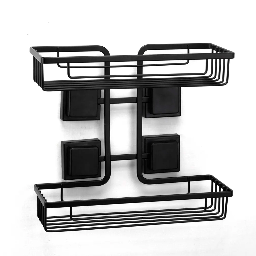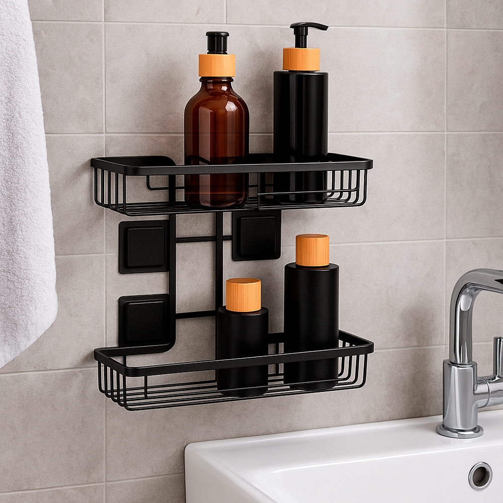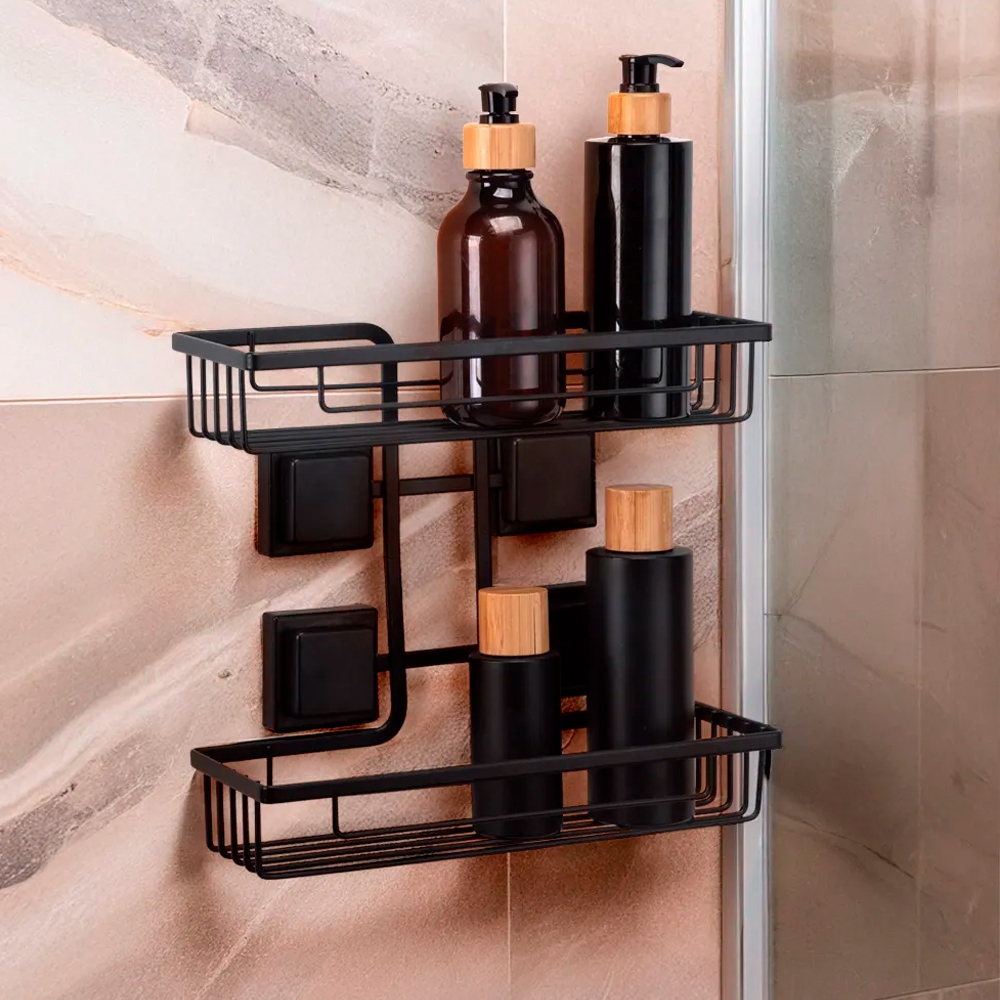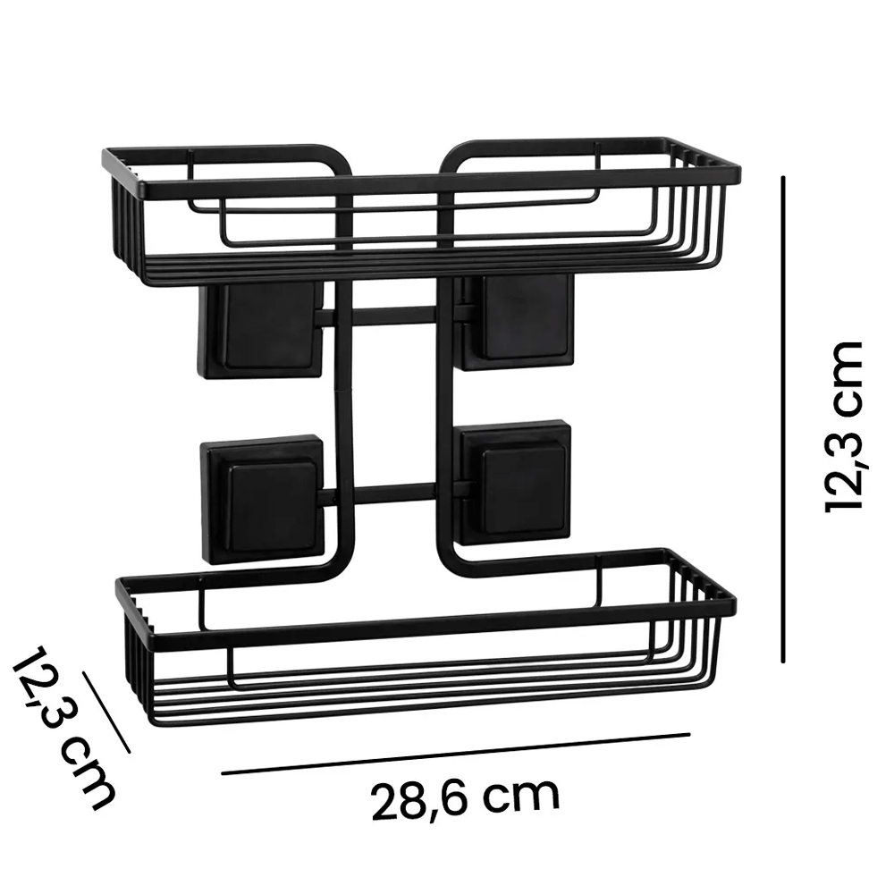 Suporte Porta Shampoo Dois Andares Preto Arthi 3M Duplo Prateleira Sem Furos