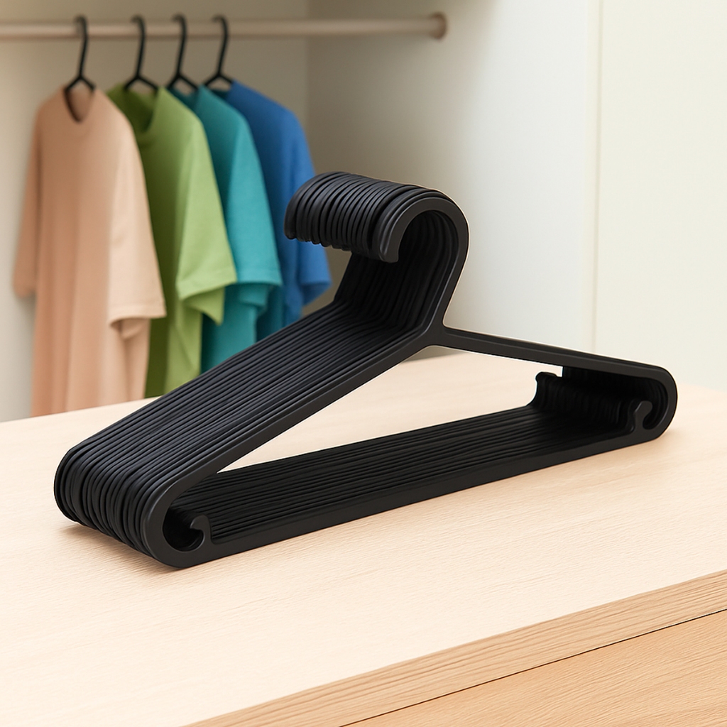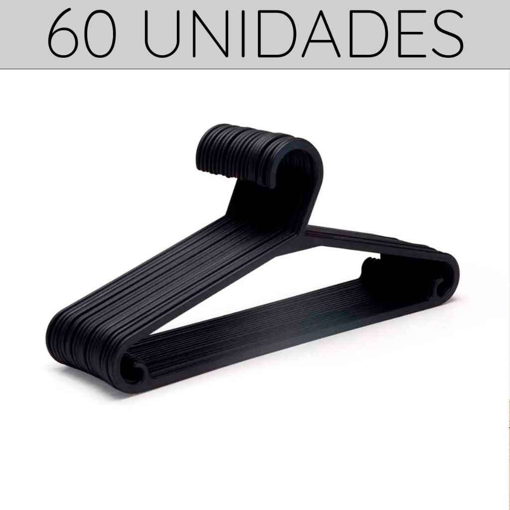 Kit 60 Cabides Adulto Alta Qualidade Antideslizante Preto Conjunto Reforçados Organizar Roupas