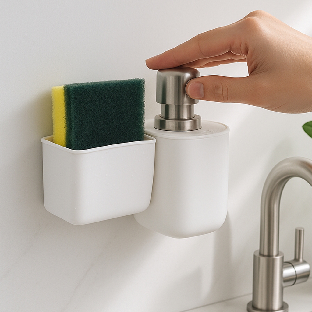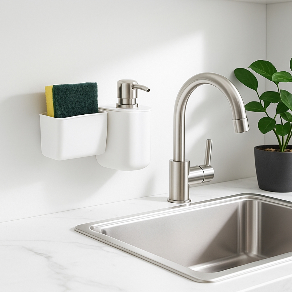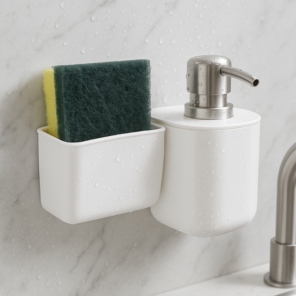 Porta Detergente e Bucha de Parede Adesivo 3M Suspensa Sem Furo Organizador Pia Cozinha Preto Branco
