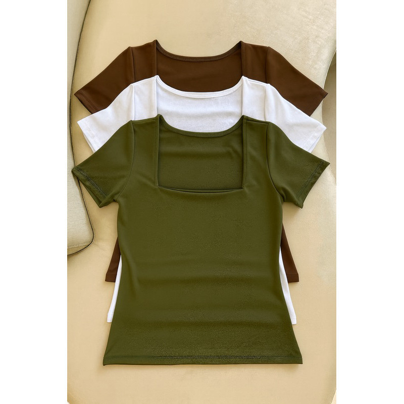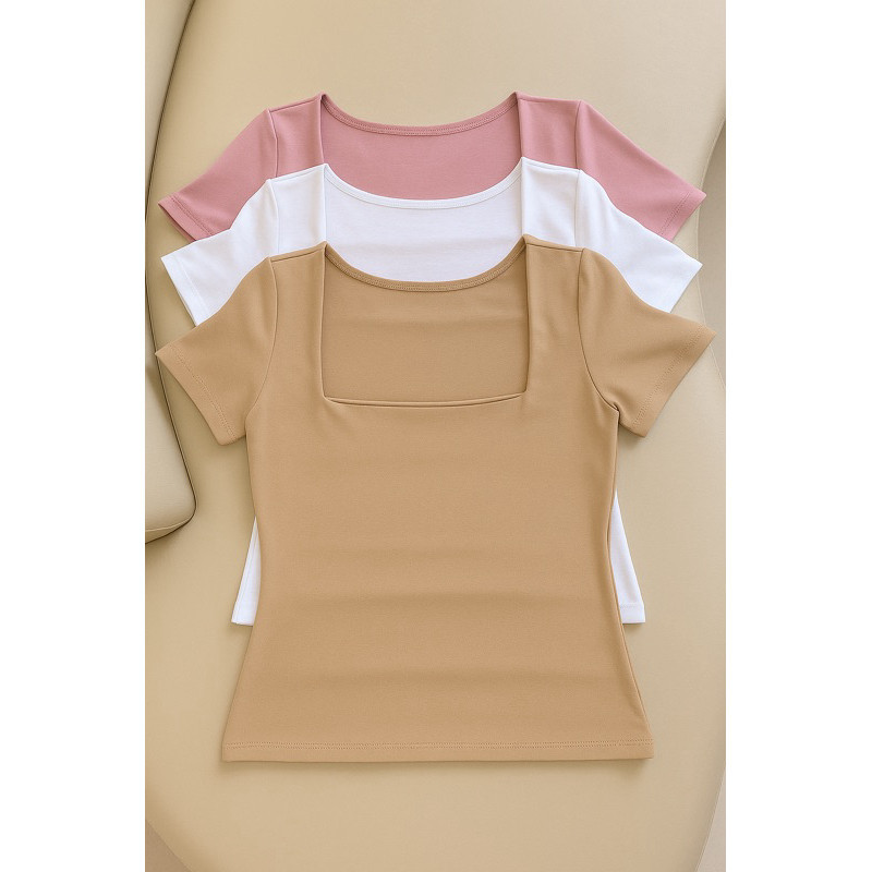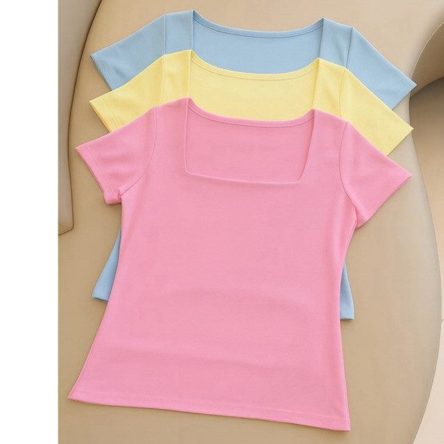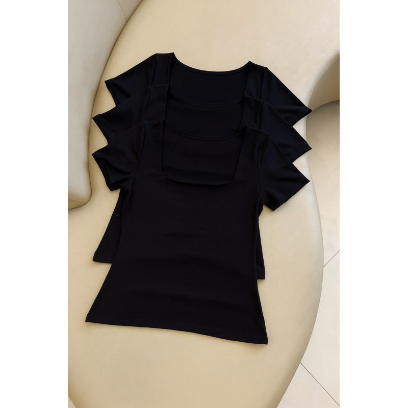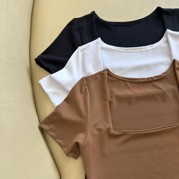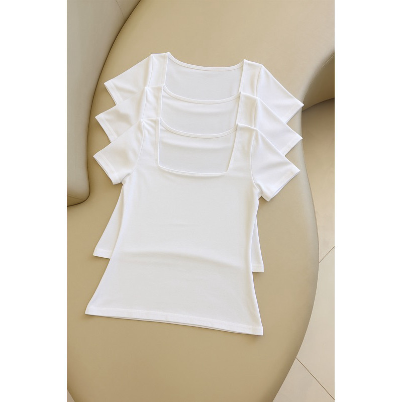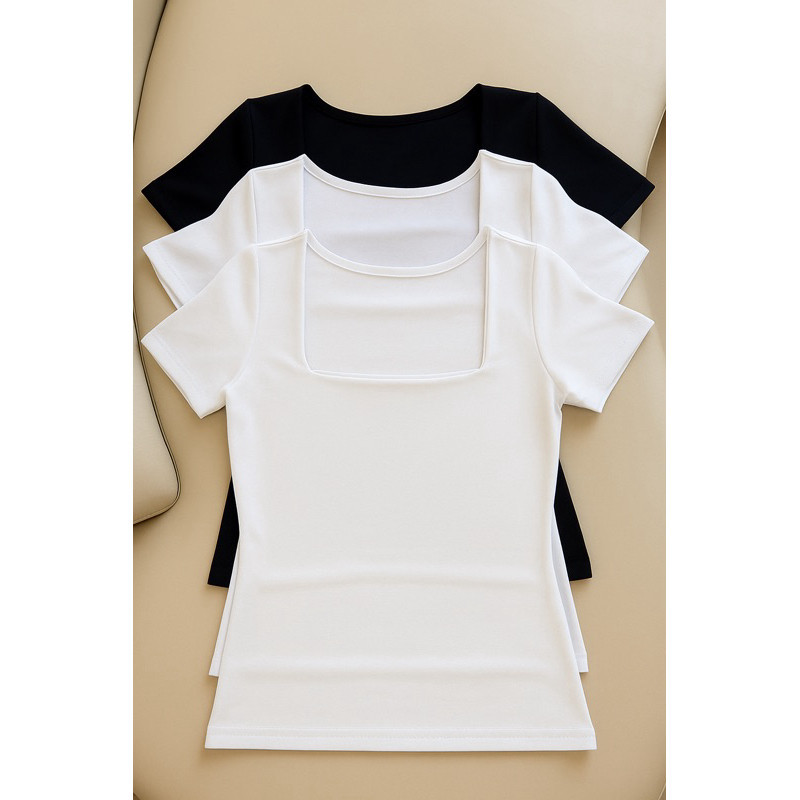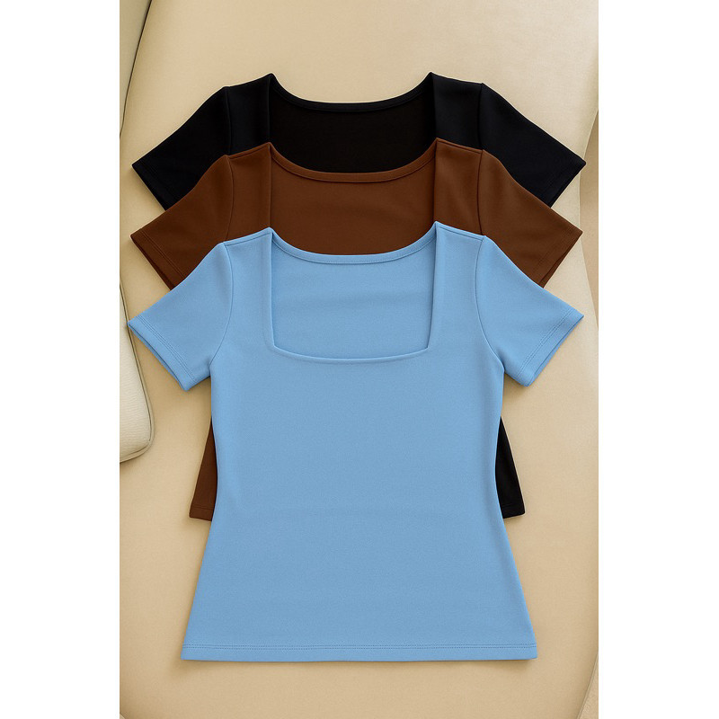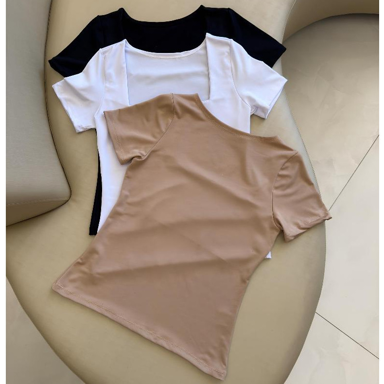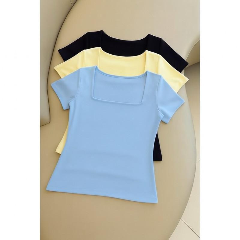 kit 3 Blusas Feminina Baby Look Manga Curta Gola Quadrada Decote Quadrado Moda Casual Versátil Blogueira 2025