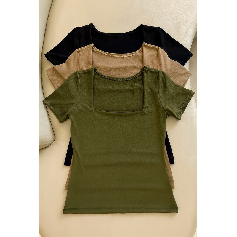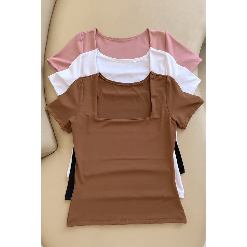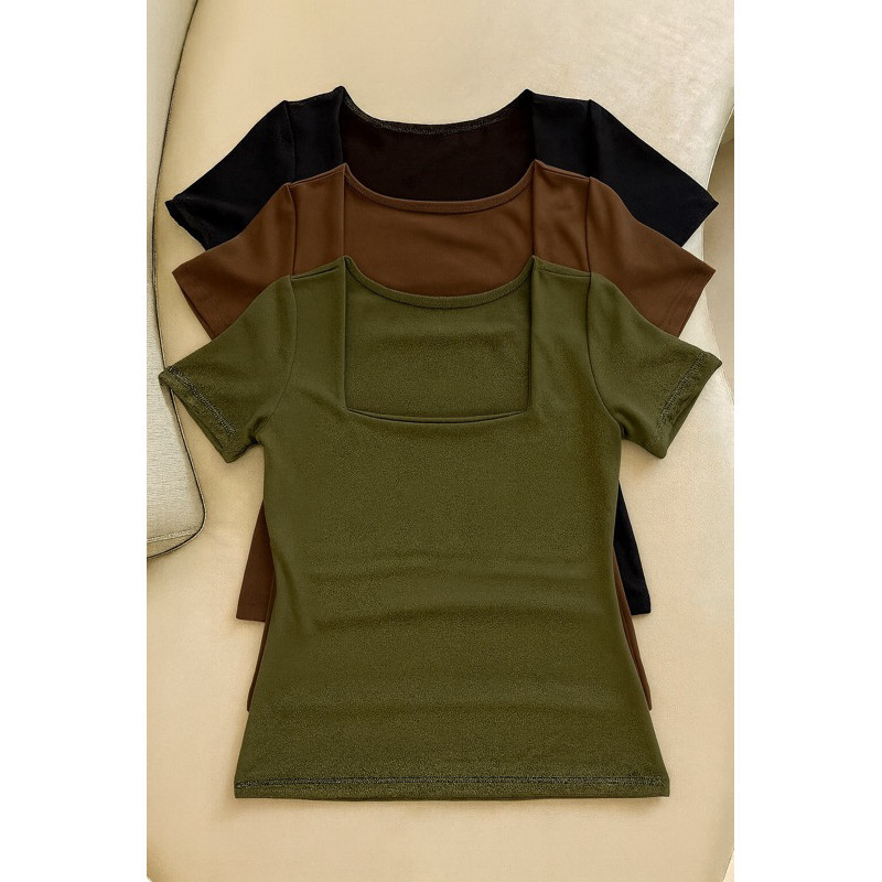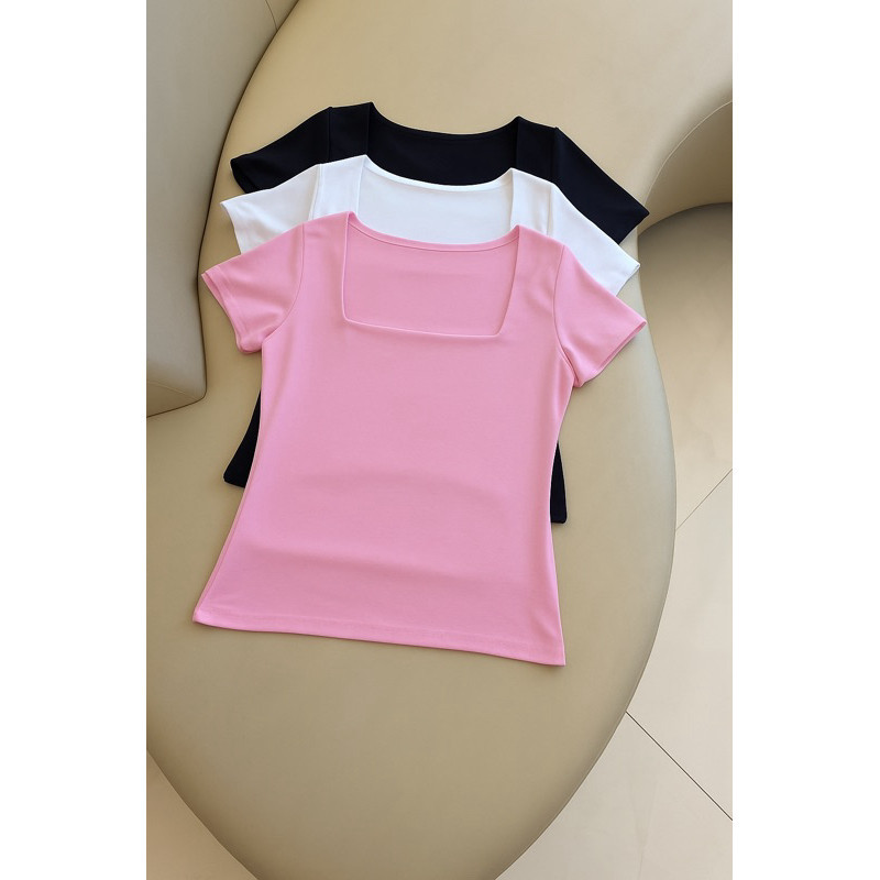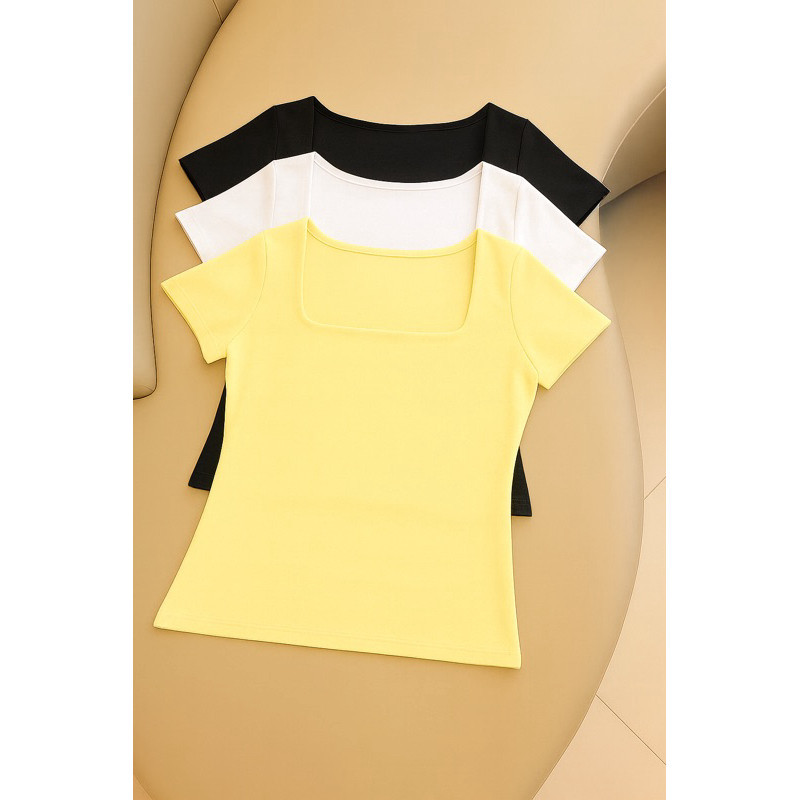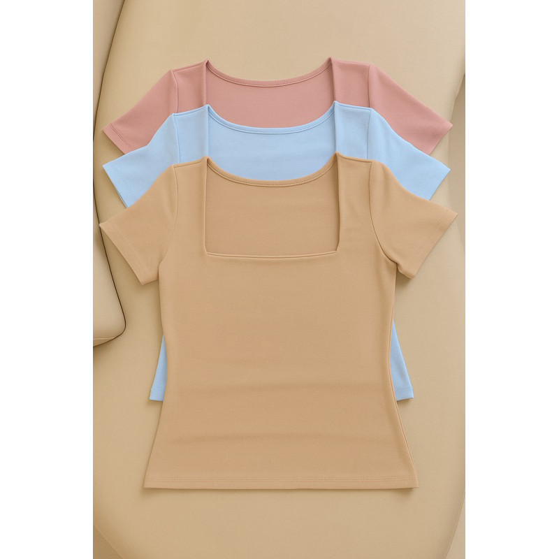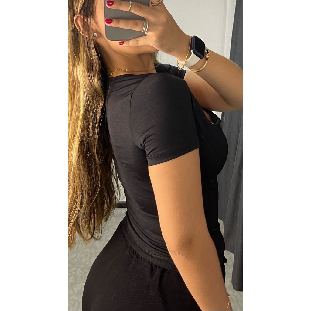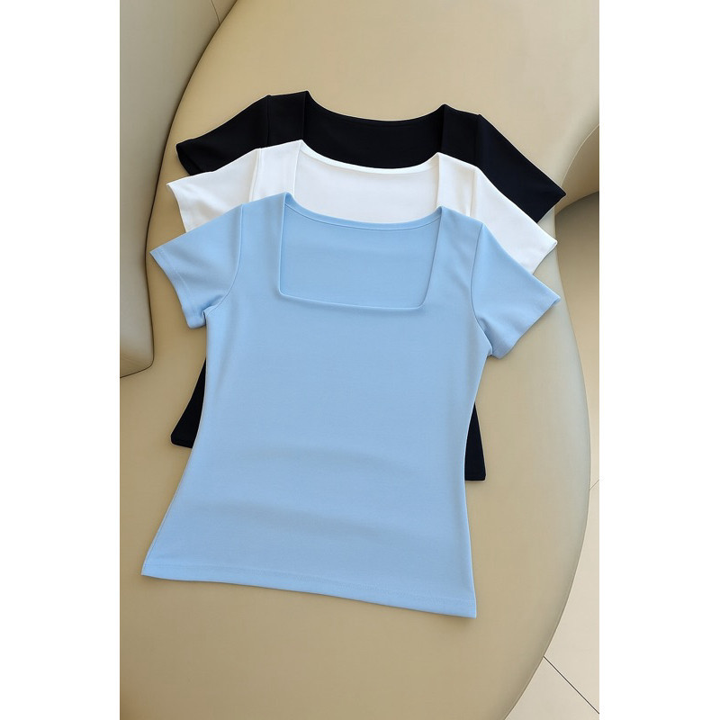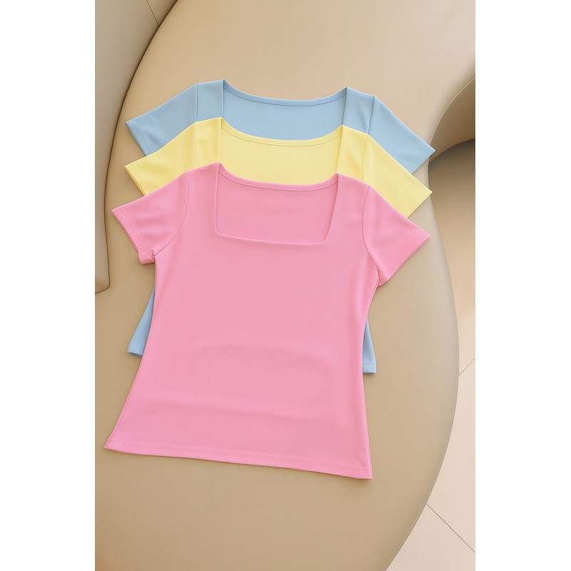 kit 3 Blusas Feminina Baby Look Manga Curta Gola Quadrada Decote Quadrado Moda Casual Versátil Blogueira 2025