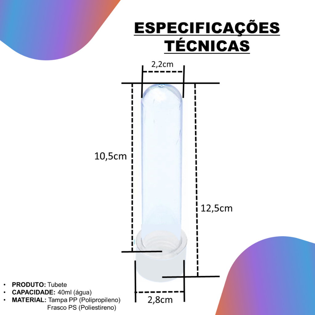 50 unidades Tubetes 13cm - Para Lembrancinhas - Várias Cores