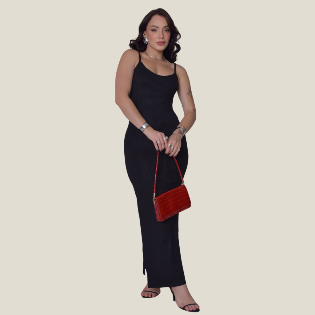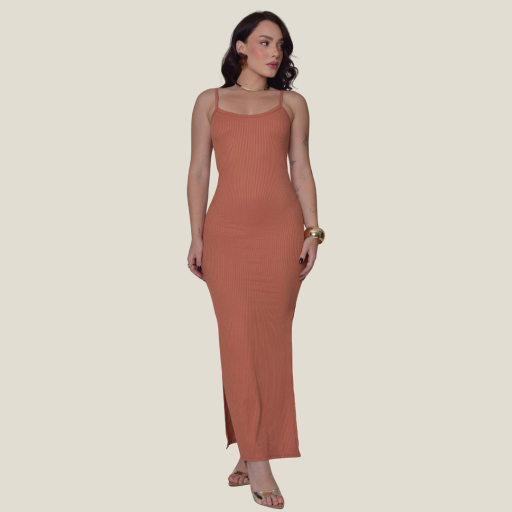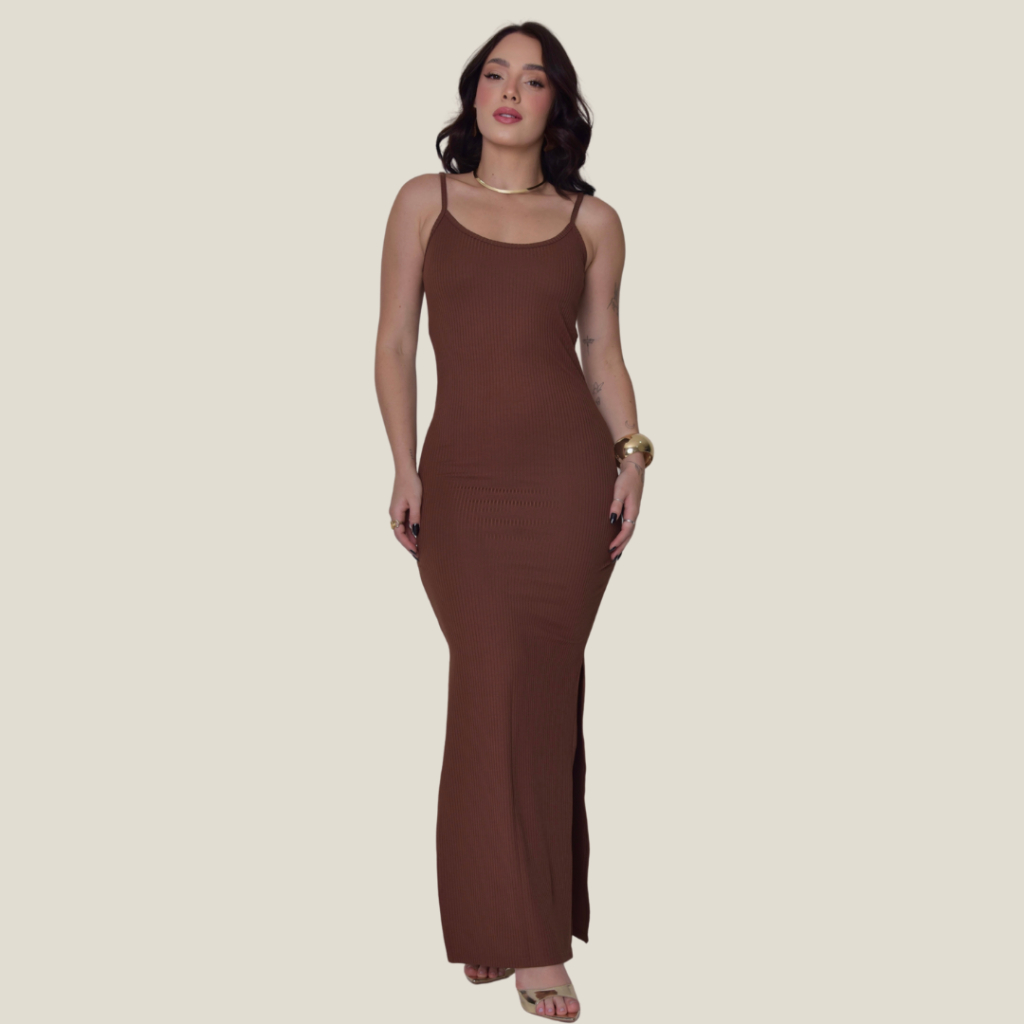 Vestido Canelado Longo com Fenda Lateral de Alcinha Varias Cores