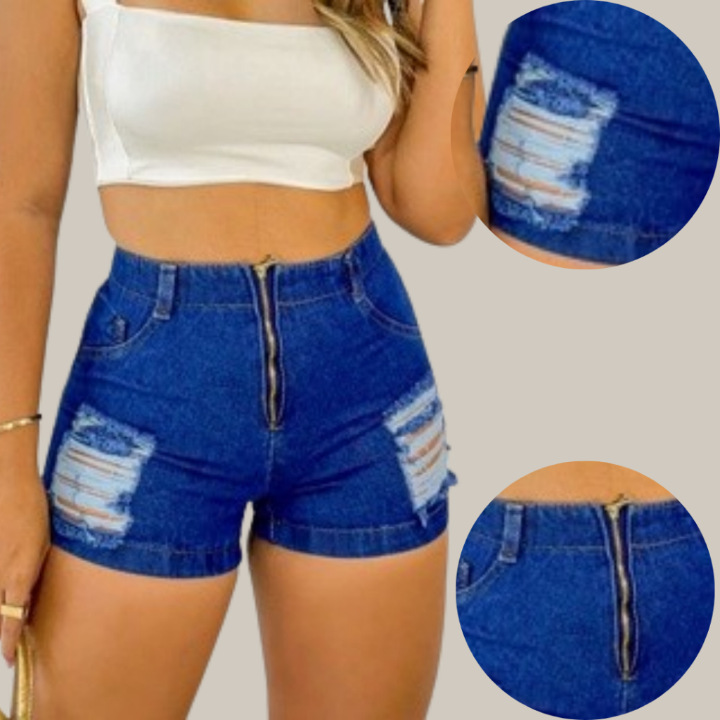 Shorte Jeans Feminino Ziper Azul Escuro