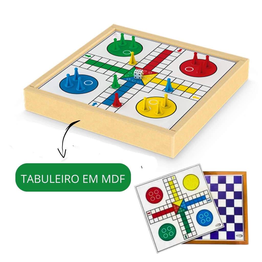 Jogo Dama e Ludo Madeira Tabuleiro Madeira 2 Em 1 Estojo MDF