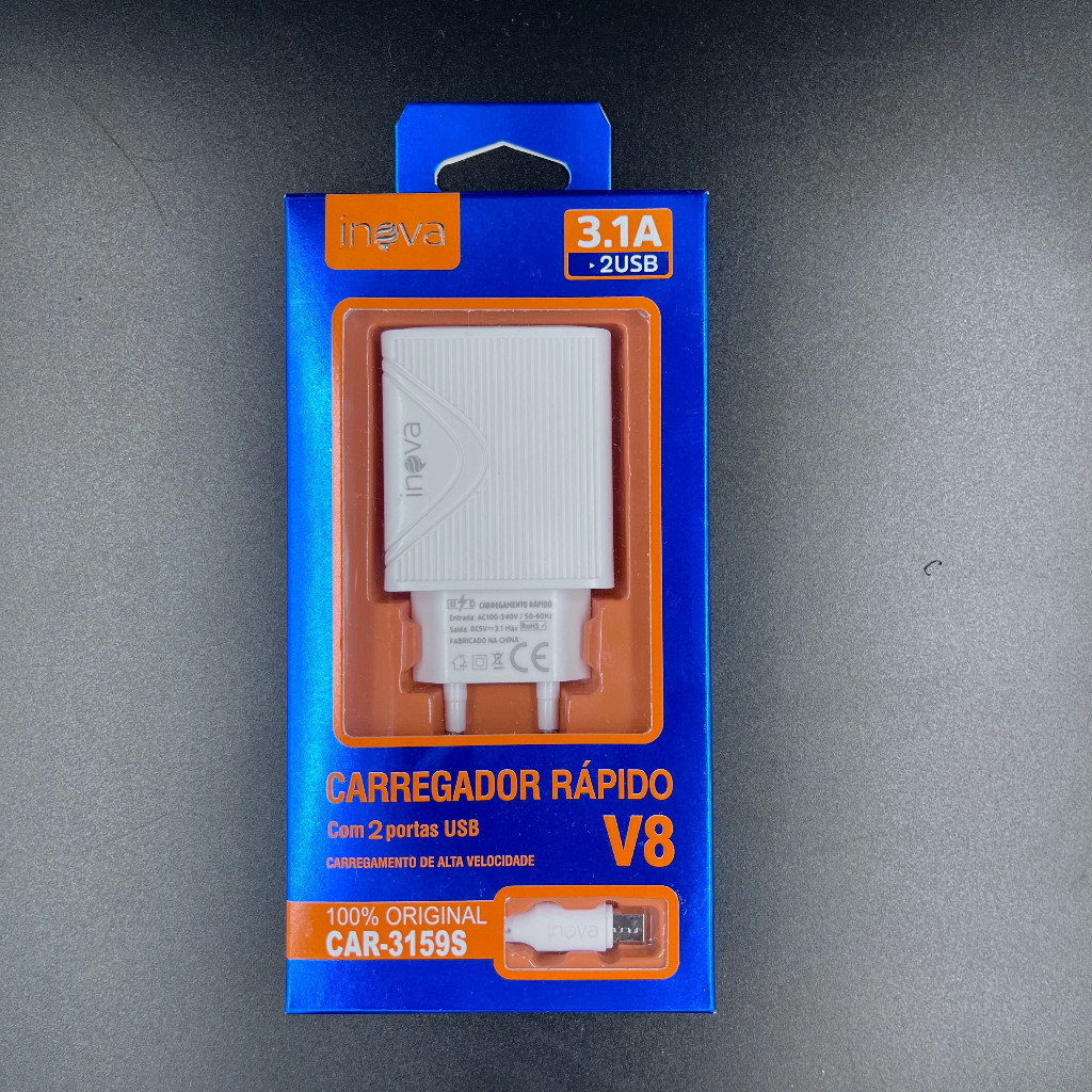 10pcs Carregador Celular Inova 3.1 Android V8 2 Usb